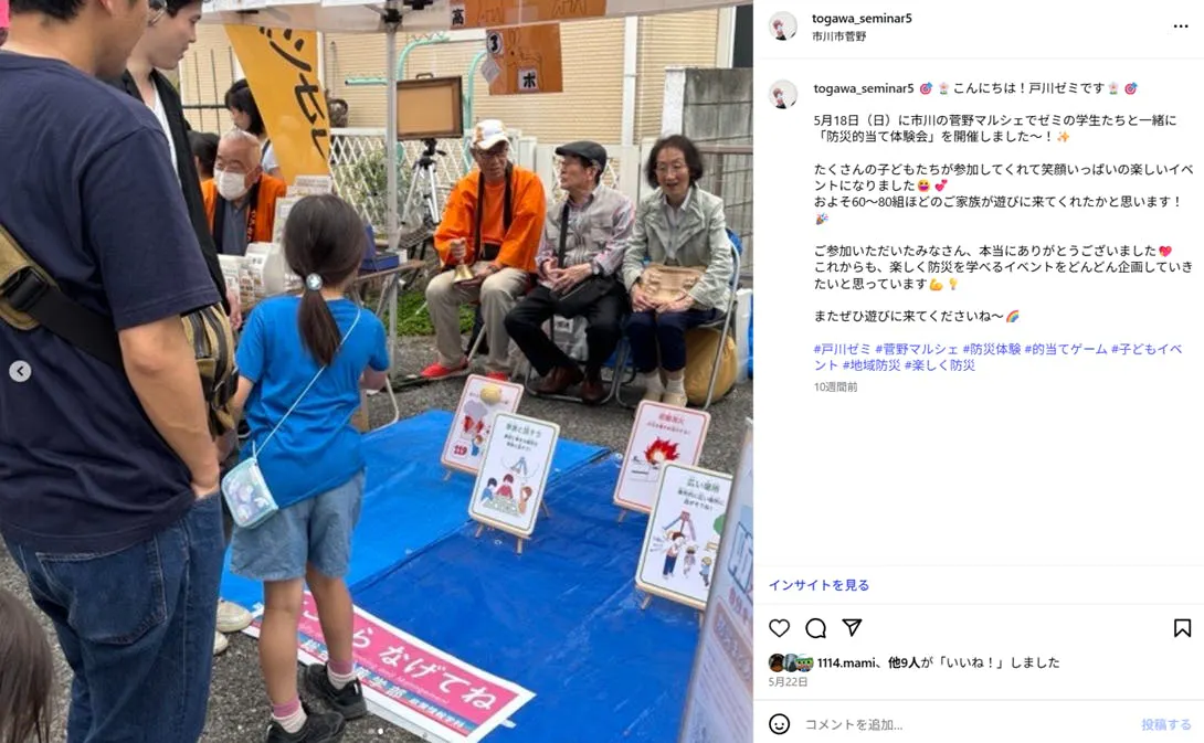 ゲームの形をとることで多世代の橋渡しをするような、かるたのようにもできれば、世代間の継承もできるので。小さい子でもわかる、その担い手作りが実現するように応援してます!ぜひ、戸川ゼミをきっかけにして土地をつないでくれる防災人材の育成に結びつくデザインを期待しています。