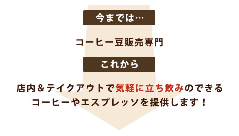 さらに、たくさんのお客様やお店の前を通る方から、店内でコーヒーを飲みたいというリクエストも頂いております。