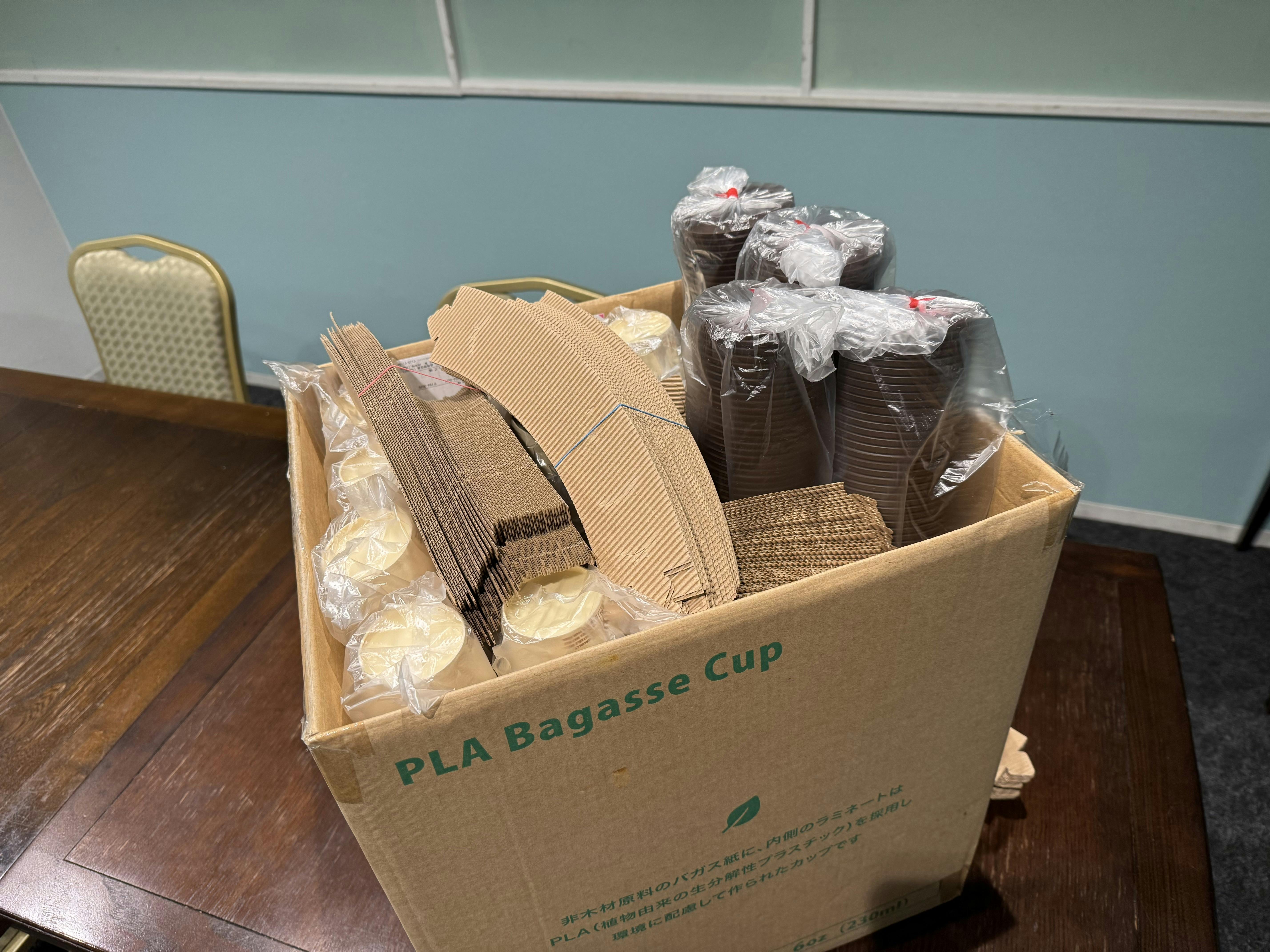 3日間で400杯だせるカップとスリーブとリッド(蓋)や、抽出器具などの用意もサポートさせていただきました。