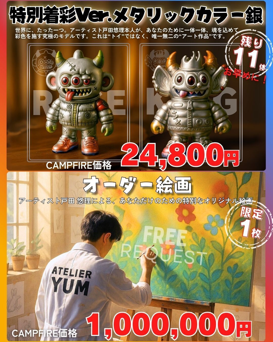本日、CAMPFIRE限定の新リターンとして「オーダー絵画(最大180cm)」並びに完売となっておりましたミニキャンバスを公開しました。