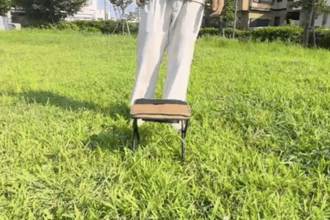 ポケチェアは、広げるだけですぐ使えるシンプル構造。工具や複雑な手順は一切不要で、慣れればほんの数秒でセット完了。