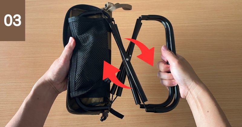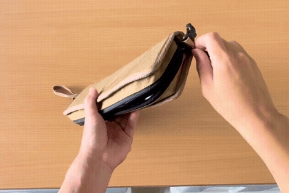 使い終わったら折りたたみ、なんと座面部分をひっくり返せばそのままポーチに早変わり。