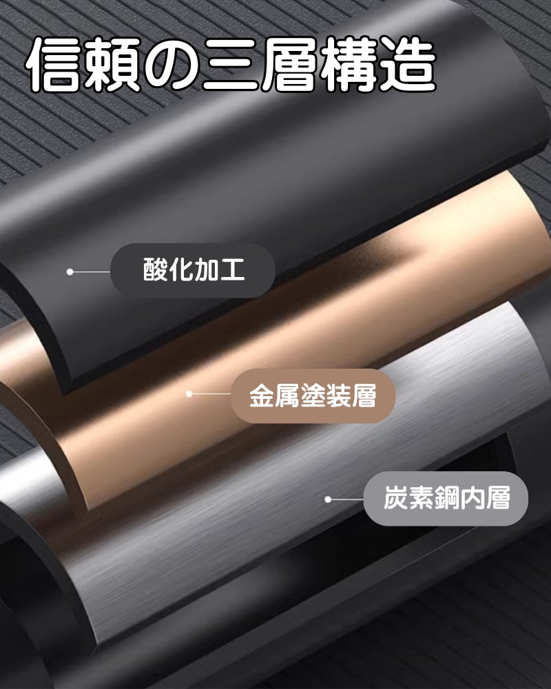 素材(フレーム):三層構造強度アルミ(酸化加工・金属塗装層・炭素鋼内芯)