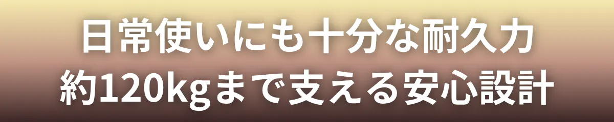 A. 耐荷重は約120kgです。急激な荷重や偏った座り方は避けてください。