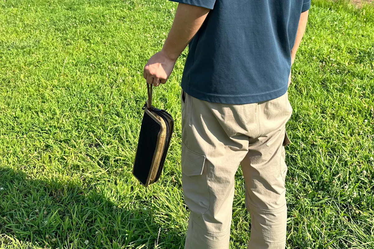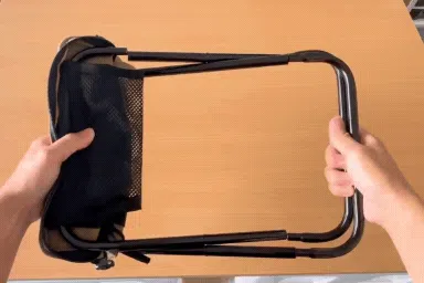 使い終わったら折りたたみ、なんと座面部分をひっくり返せばそのままポーチに早変わり。