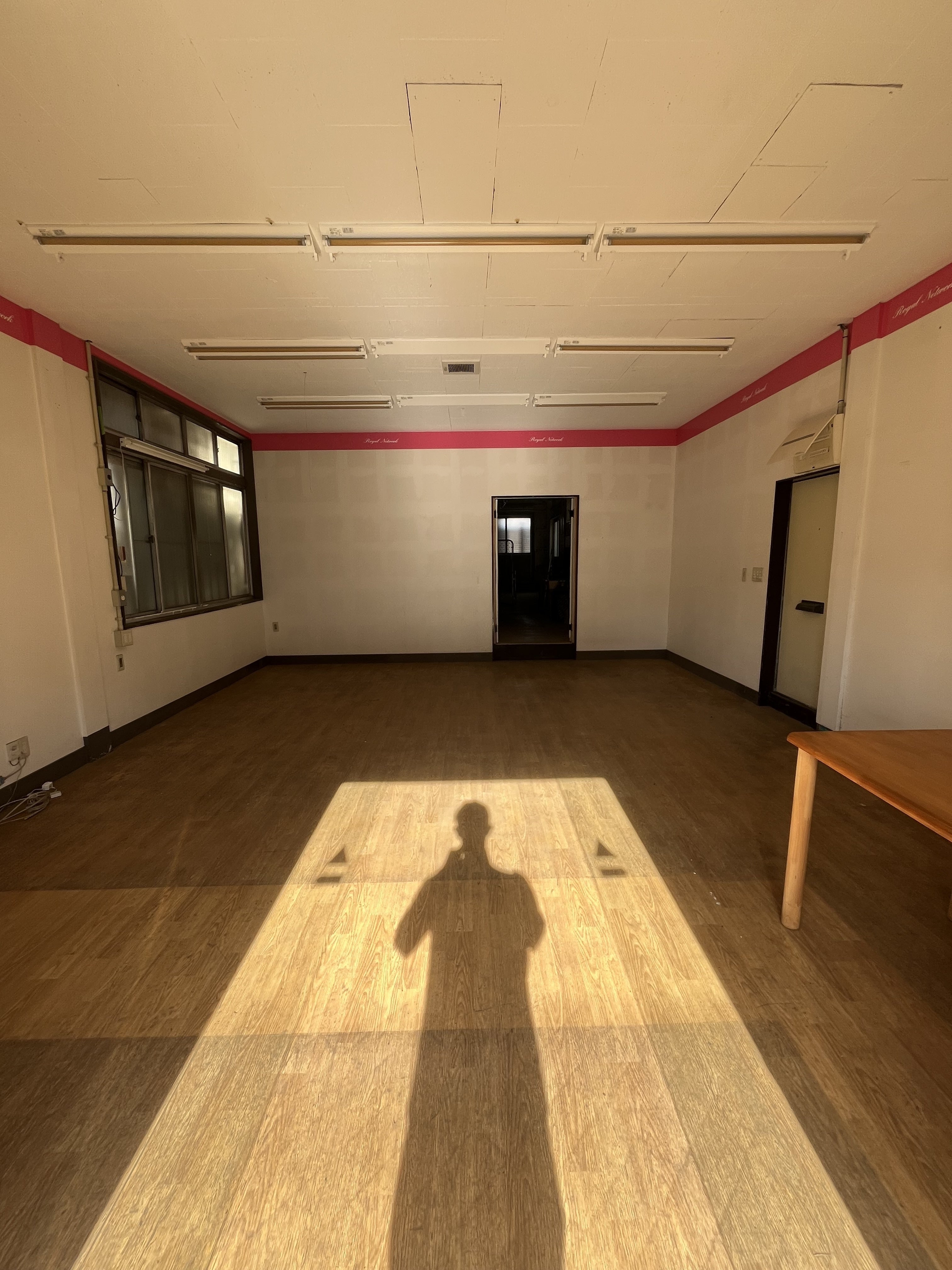 少し残されていた物は掃除をして、ちょっと綺麗にしてみました。(右端に見えるのは、内装のイメージ用に置いてみたテーブルの端っこです。)