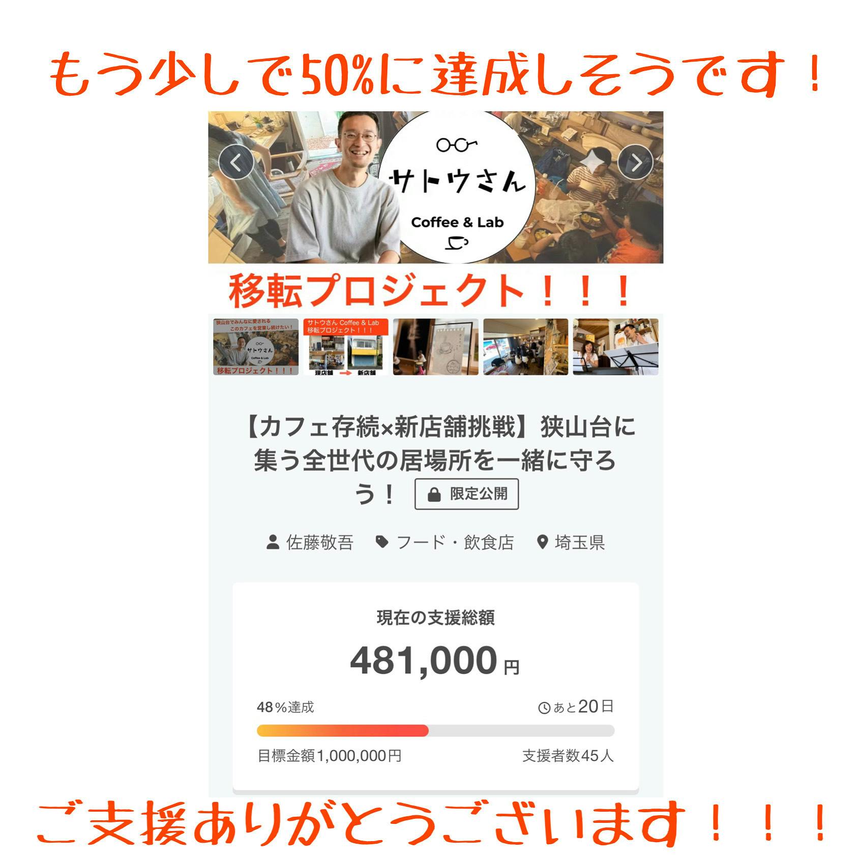 遂にご支援が50%を超えました!!!本当にありがとうございます!!!これで折り返し地点です!!!動画もインスタに上がってます!50%達成!来週には地域の方との交流会⁉︎もありそこでも宣伝していきます!頑張ります!!!