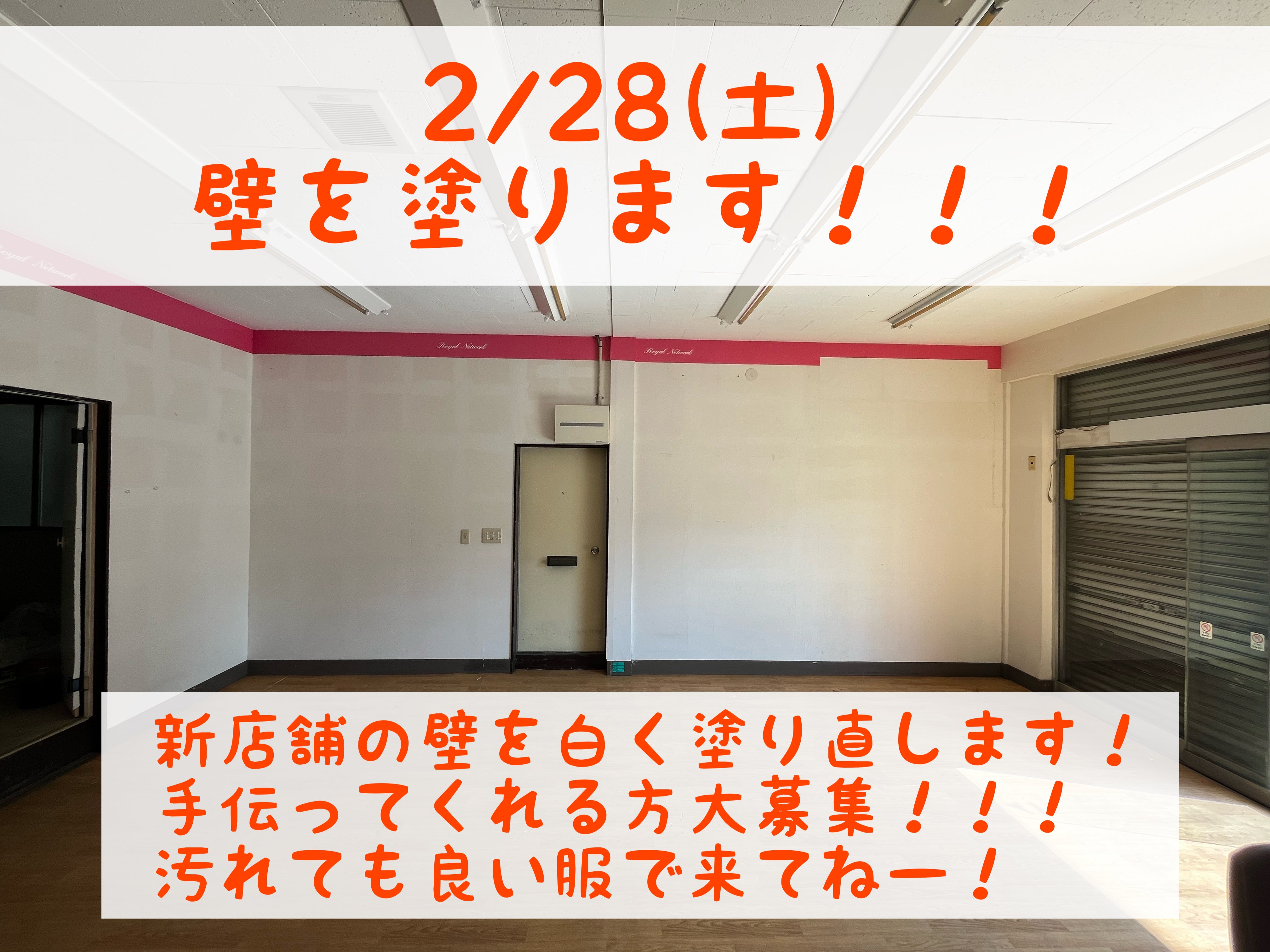 2026/02/17 11:182/28(土) 壁塗りします!なかなか工事が進められない状況で歯がゆい思いなのですが、ならば先に壁を塗ってしまえ!とお客さんからアドバイスを受け急遽開催する事にしました!新店舗の壁を白く塗り直します。もし、手伝えるよー!暇だよー!という方いましたら是非、宜しくお願い致します!!!2/28(土)壁塗りするよー!時間 10:00〜 終わるまで?参加 だれでも参加出来ます!(もしたくさん集まったら掃除とかもお手伝いお願いしたいです。わがままですみません…)汚れてもいい服で来て下さい!場所 サトウさん Coffee & Lab 新店舗埼玉県狭山市狭山台3-10-8 もっと見る
