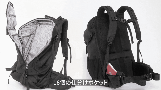 特に、16箇所に分かれた仕分けポケットは、ケーブルなど細かい荷物まで整理整頓でき旅の時間を効率的に使え、さらにウエストベルトによる荷重分散で、長時間の移動中も快適さが持続することが明確になりました。