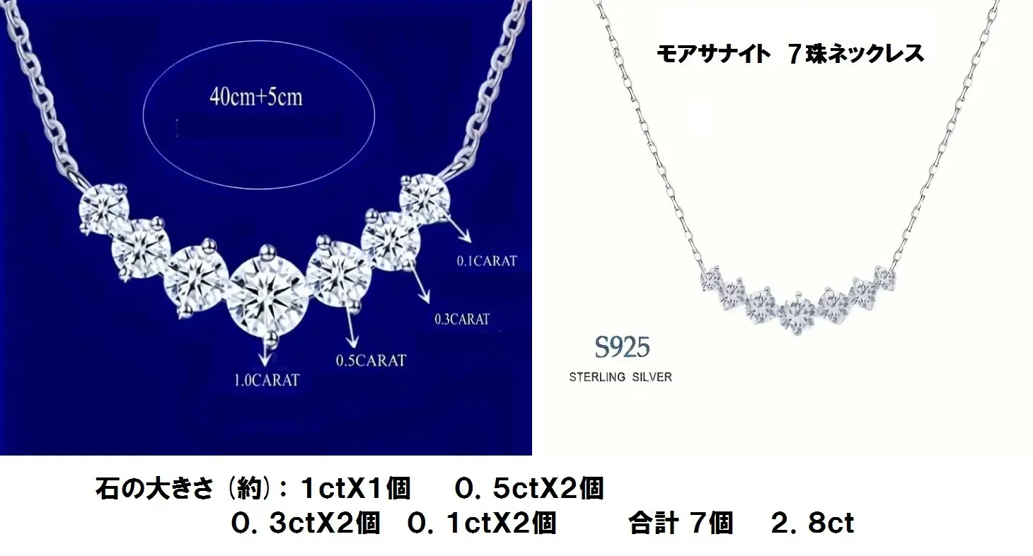 石大きさ (約): 3ctX1個 0.5ctX1個 ネックレス素材 ステンレス製スチール、