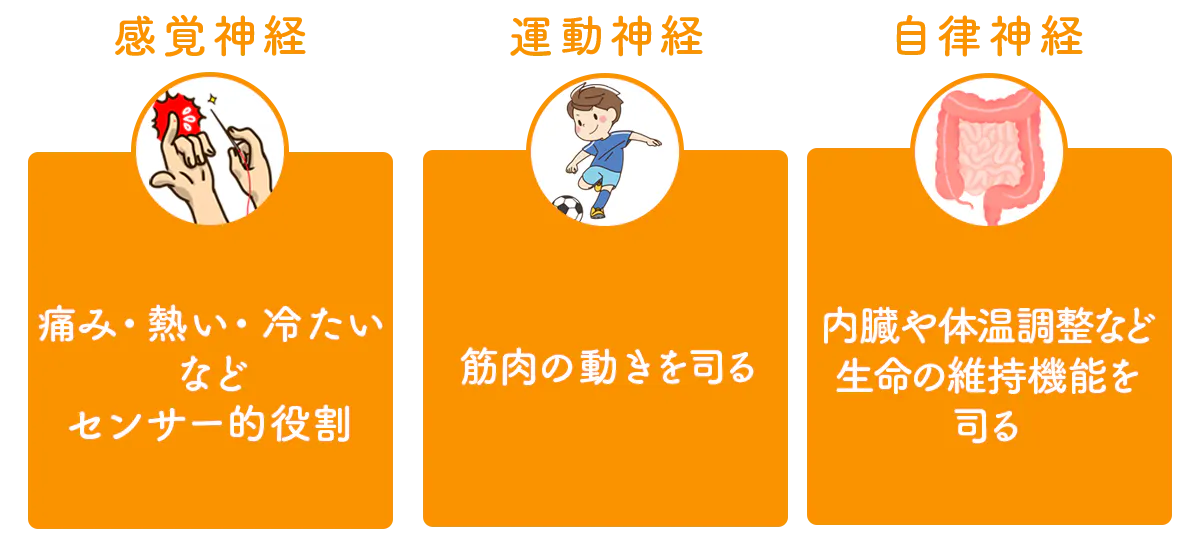 ・感覚神経:痛み、熱い、冷たいなどセンサー的役割