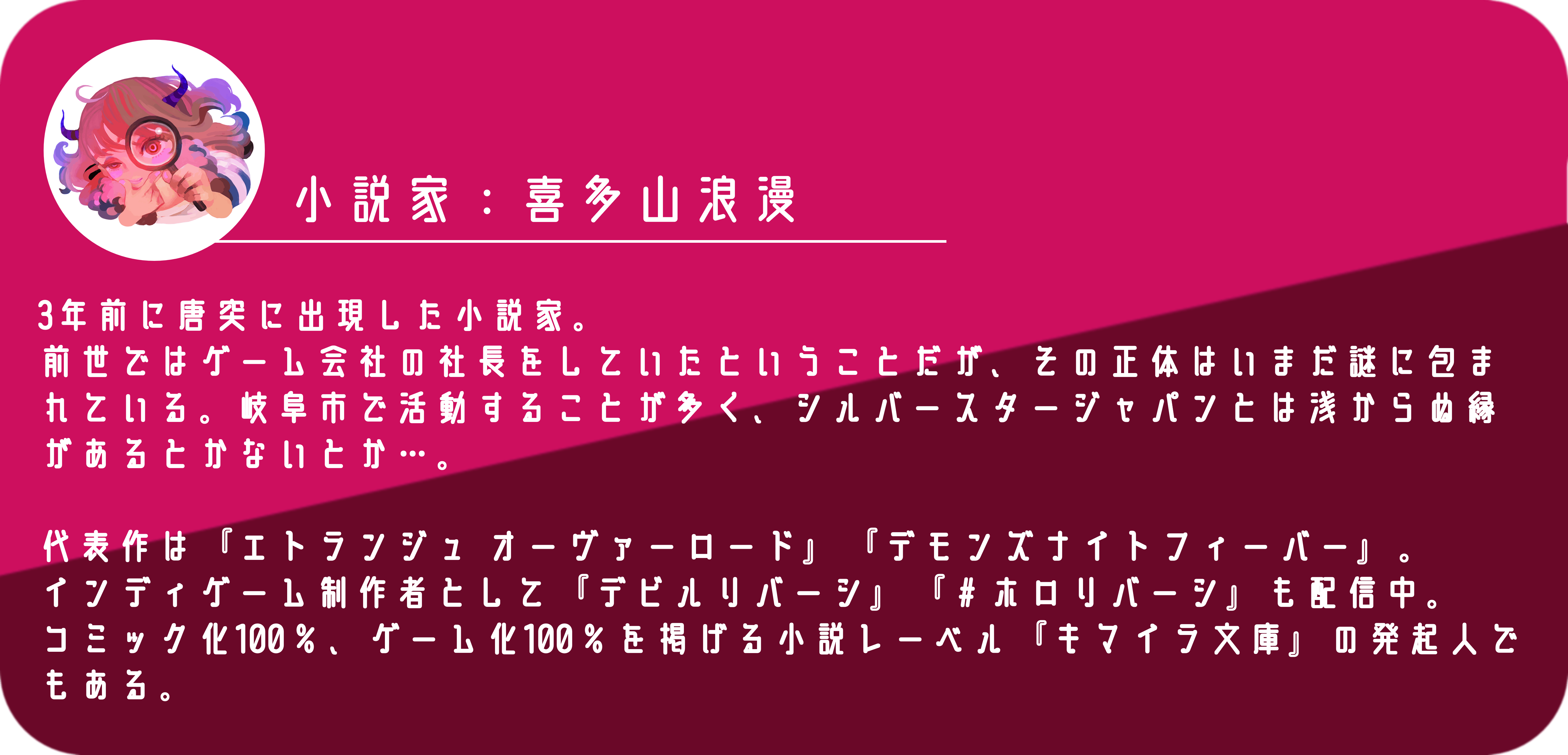 そこでゲーム会社の代表を務めた経歴もあり、小説家として活動している「喜多山浪漫」さんに御協力いただき、15年のシリーズを"物語"として完結させよう!というのが本プロジェクトの目的でございます。