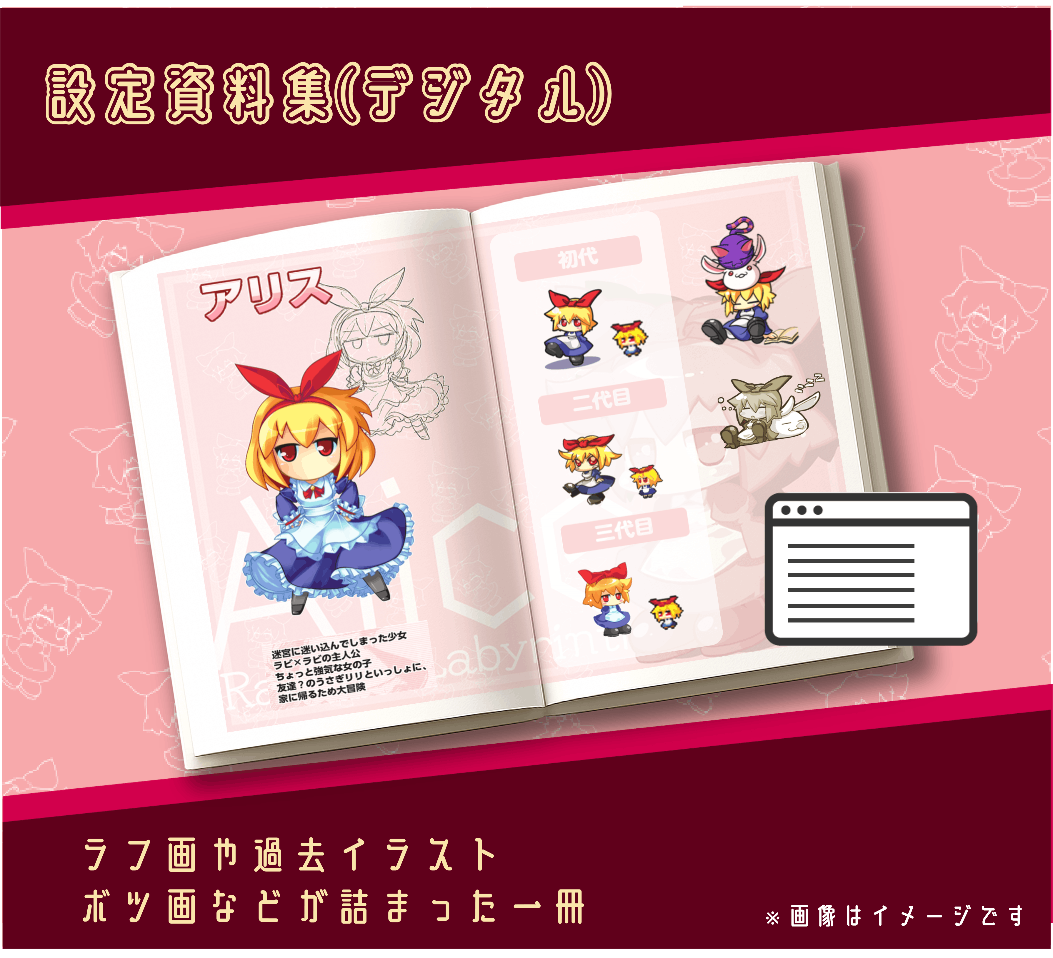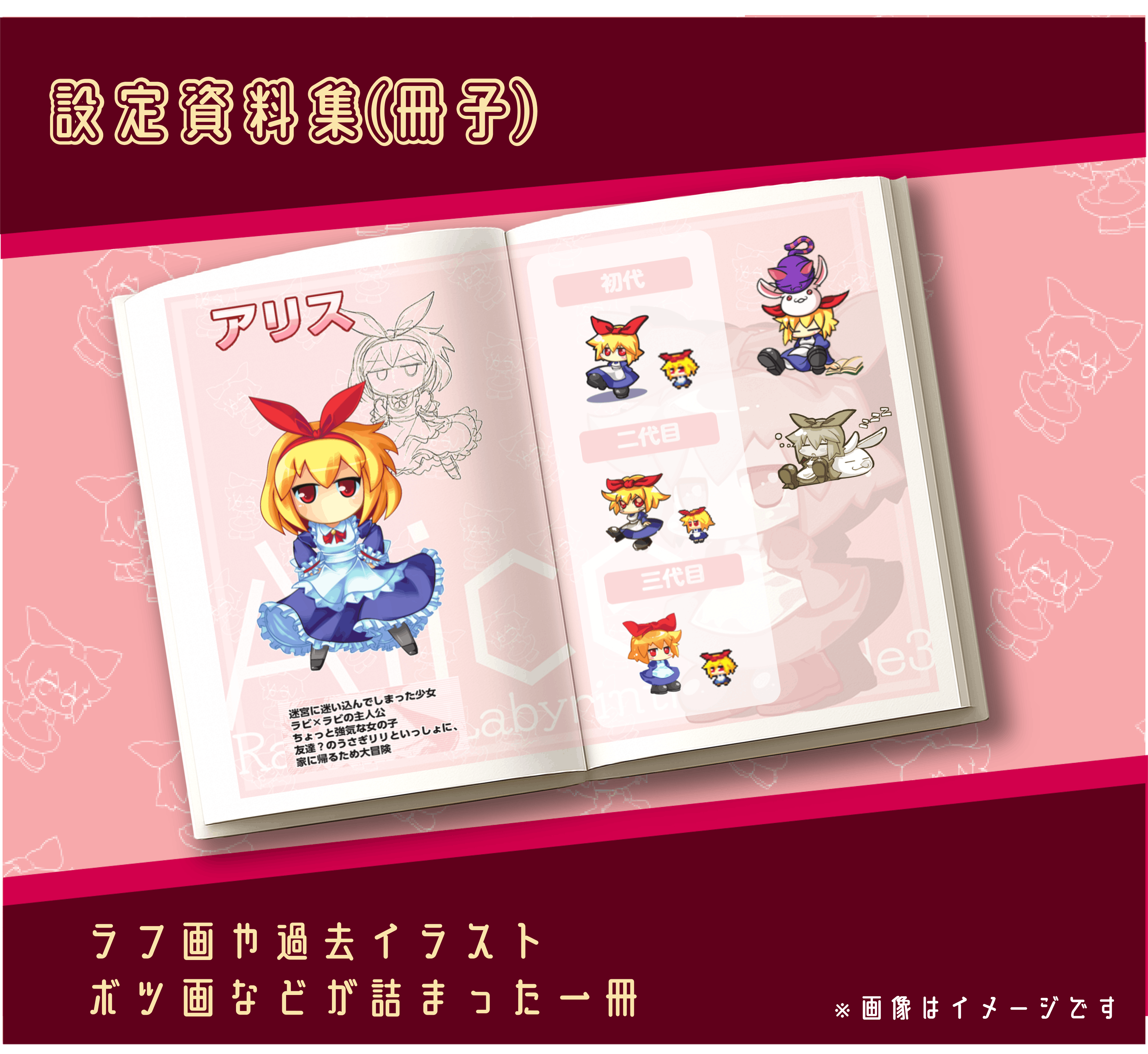 ※同時出展のタイトルが含まれます。おおよそ2000mm*1700mmがラビラビのイラスト範囲です。