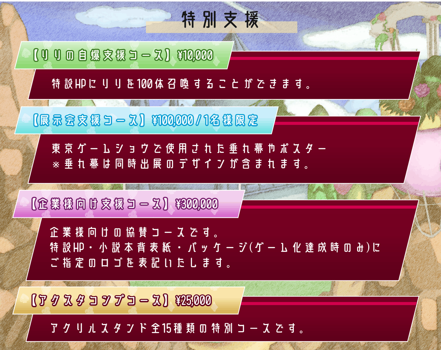 ※ゲーム製作に関わるリターンは開発終了後の提供となります。