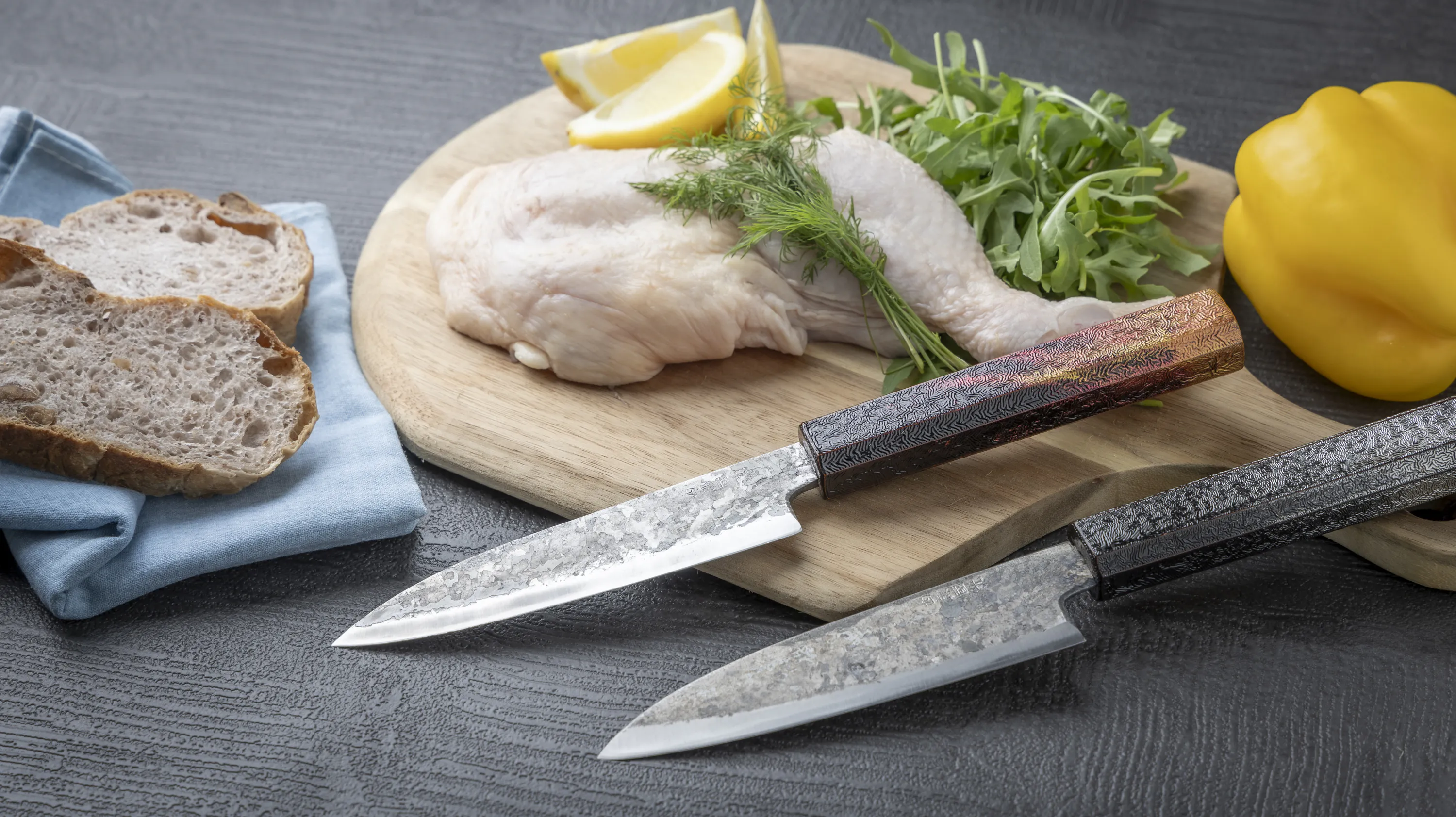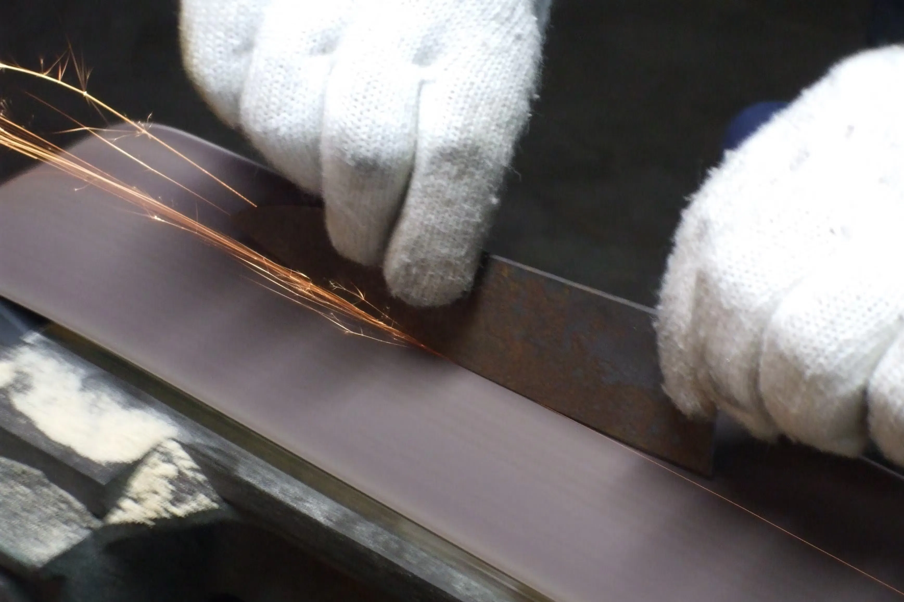 また青紙2号の特徴は独特の切れ味である「甘切り」にあります。白紙鋼の刃の切れ味と比較すると青紙の切れ味は長持ちし、食材を切ったときに滑らかさを感じる切れ味です。
