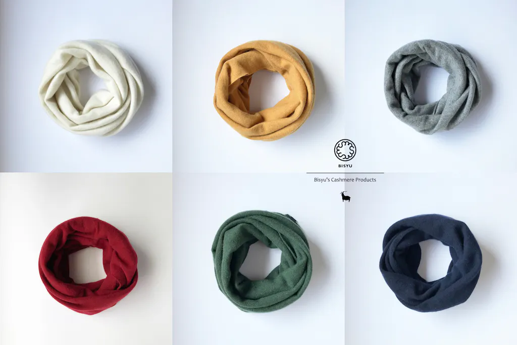 Bisyu’s - Products. スヌード&マフラーは、編み上げ〜整理まとめ工程まで、