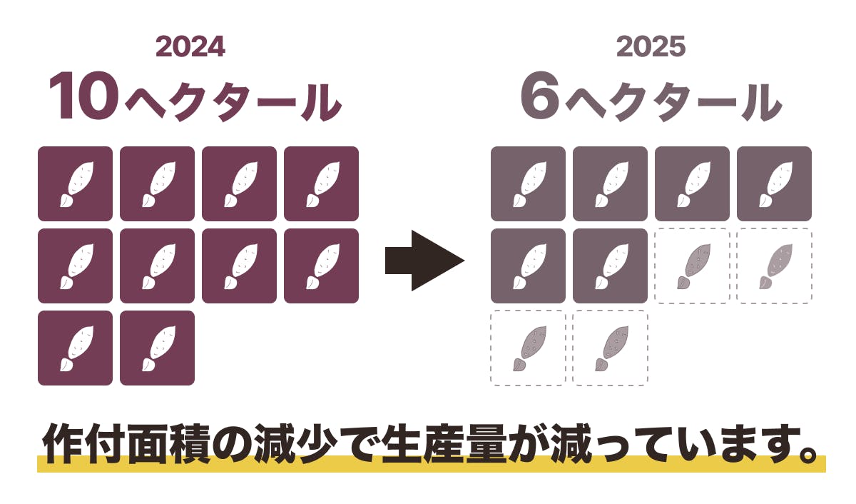 畑は病に侵され、気候も味方してくれない。出荷できる芋はほとんどなく、生産者・花木さんは“作付けを減らす”という苦渋の決断を下しました。