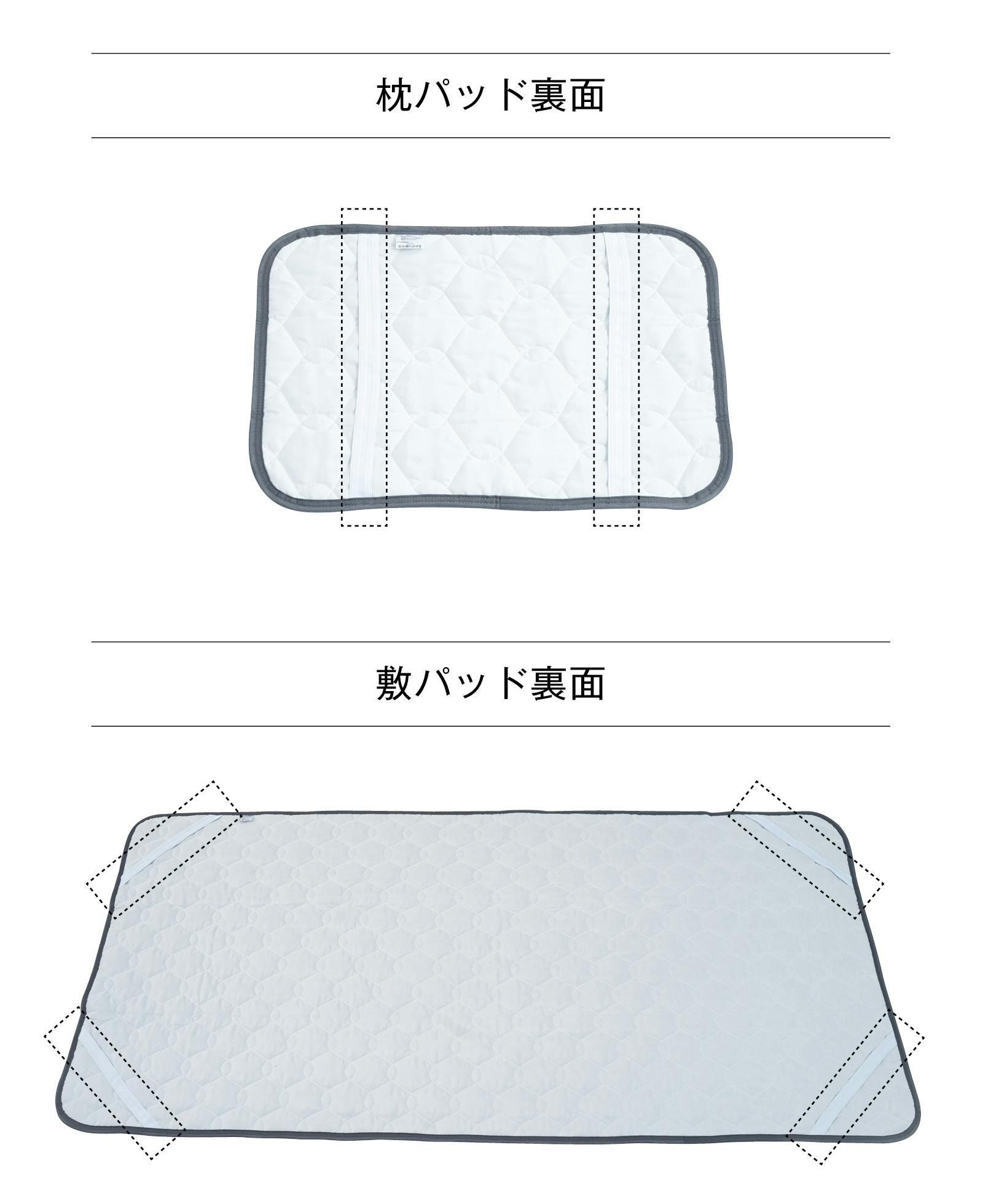 肌掛け布団、敷きパッド、枕パッドの3点セットに付属します。