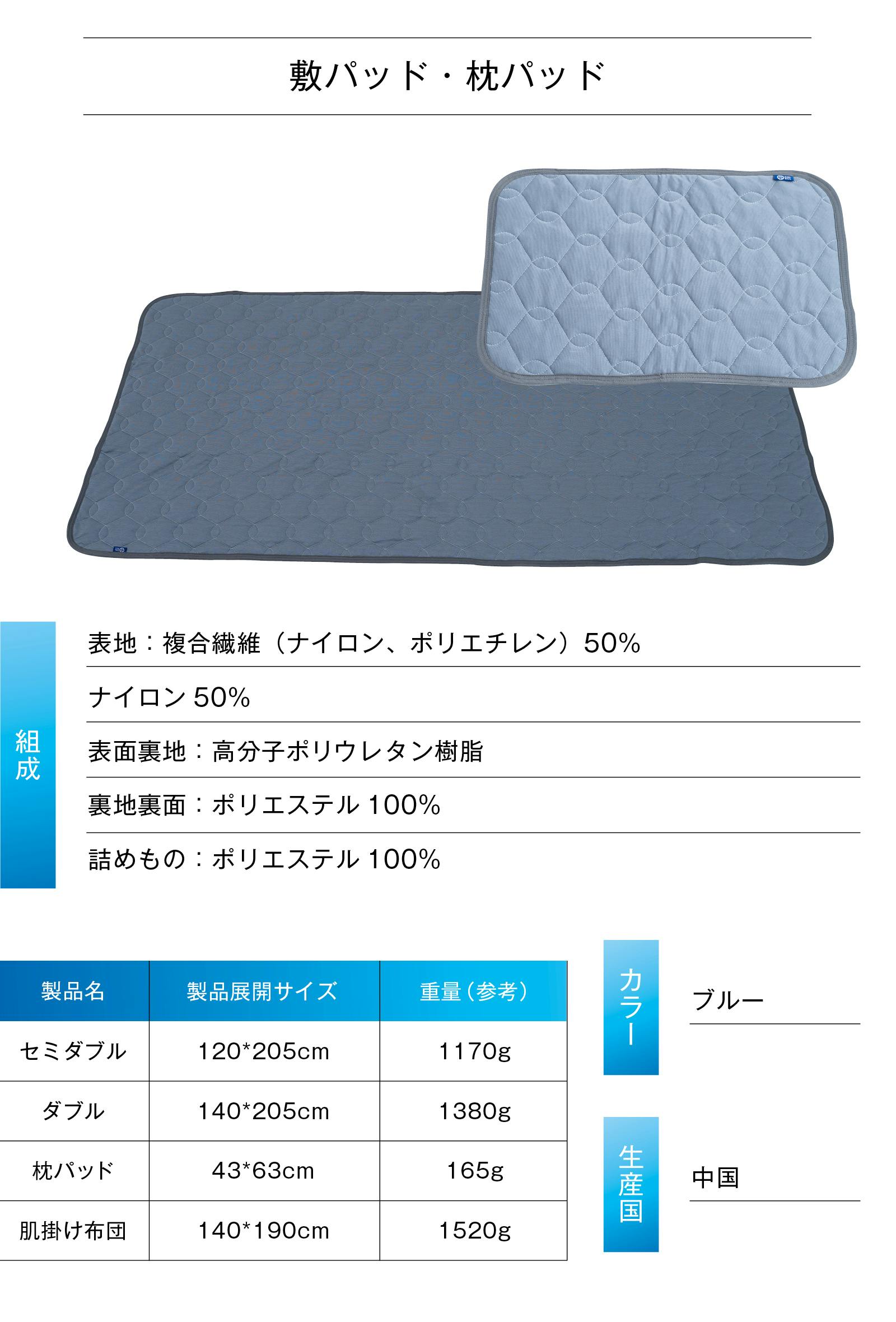 敷パッドは、セミダブル、ダブルの2サイズ展開。