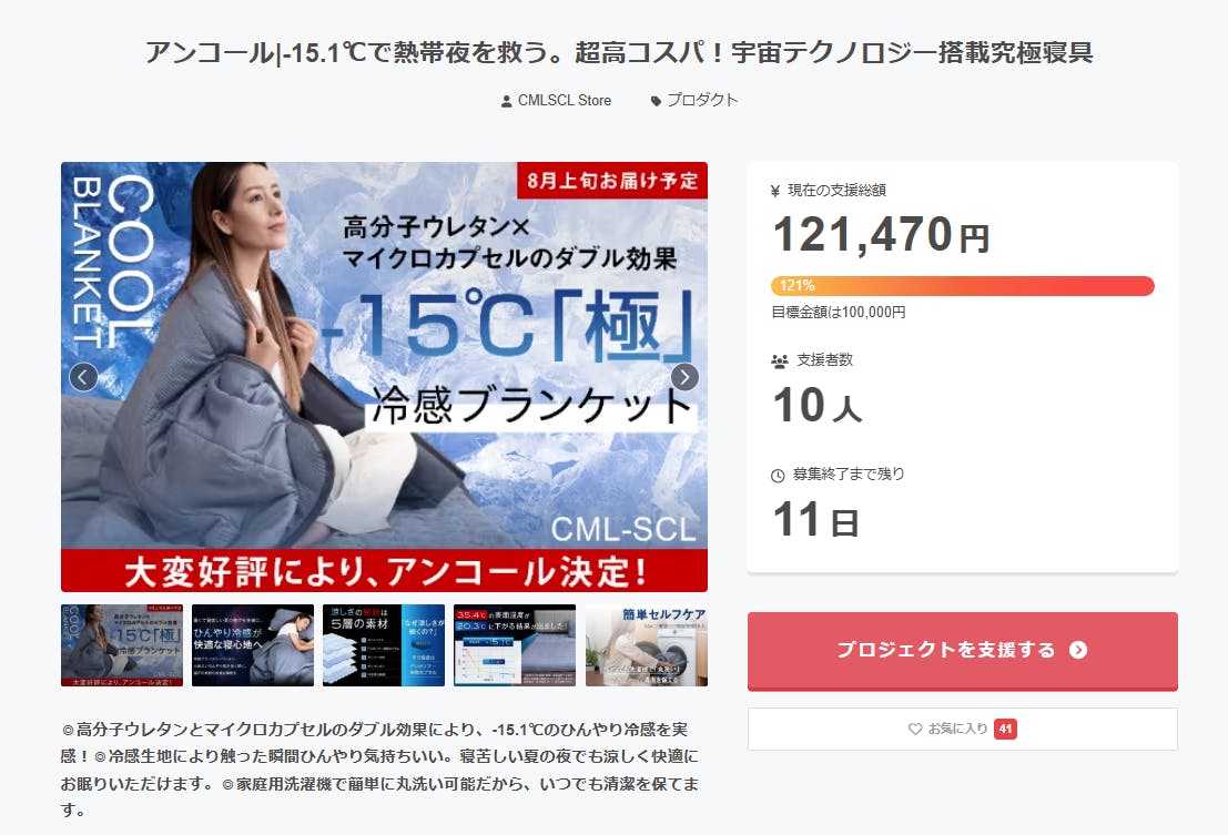 2025/07/15 10:08皆様こんにちは。「-15.1極冷寝具」プロジェクトチームです。只今よりアンコールプロジェクトが公開されました。宇宙テクノロジーにより、快適な極冷体験が朝まで長続き!プロジェクト期間は7月15日~8月4日と短期集中で、終了後すぐに発送準備に入りますので、今年の猛暑に間に合います!プロジェクトのシェア・拡散にご協力お願いいたします! もっと見る
