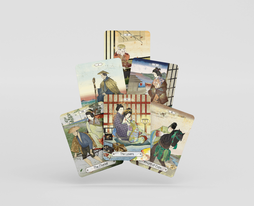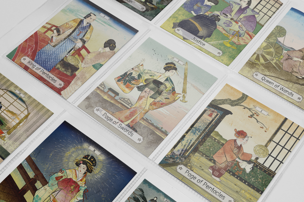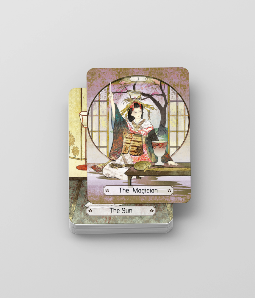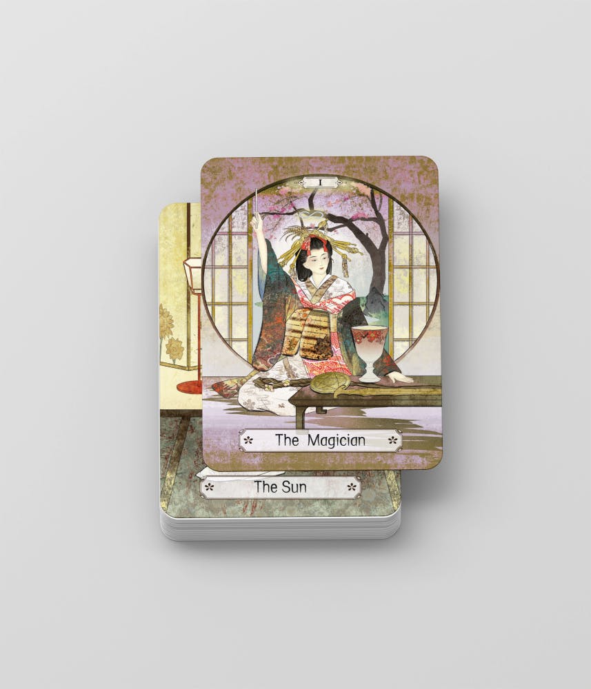 江戸時代の高貴な美と芸術を象徴する花魁の精神を込めたタロットカード
