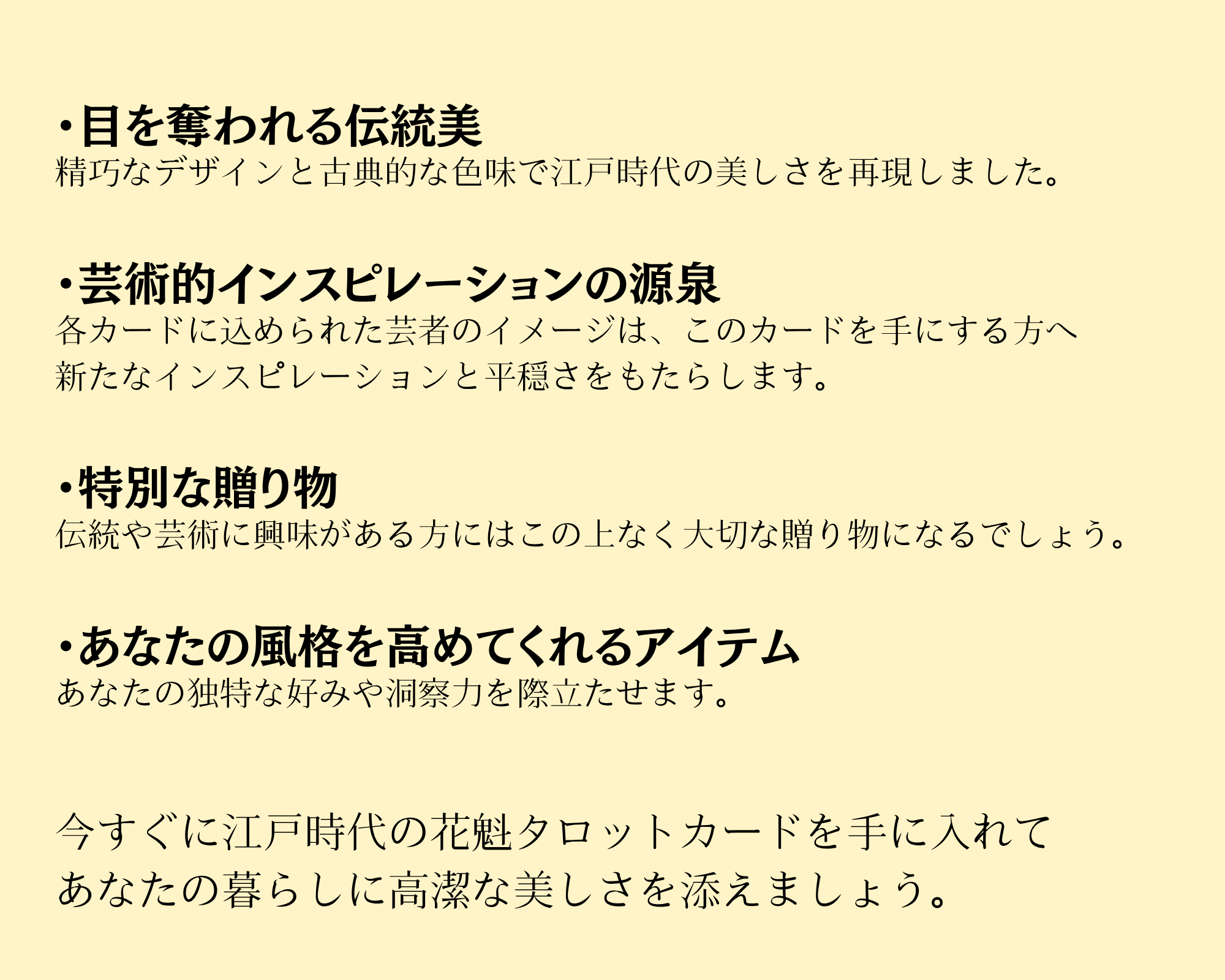 この「花魁タロットカード」は、奥深いメッセージと美しいイラストで