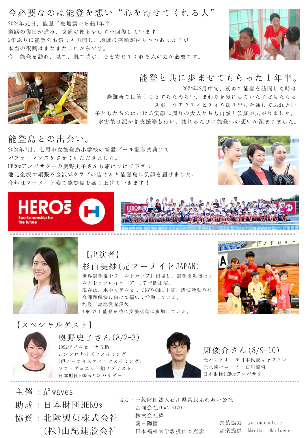 マーメイドショーというユニークな表現と、それに込められた「再び立ち上がる力」を伝える場に、当日ご一緒できることを誇りに思います。