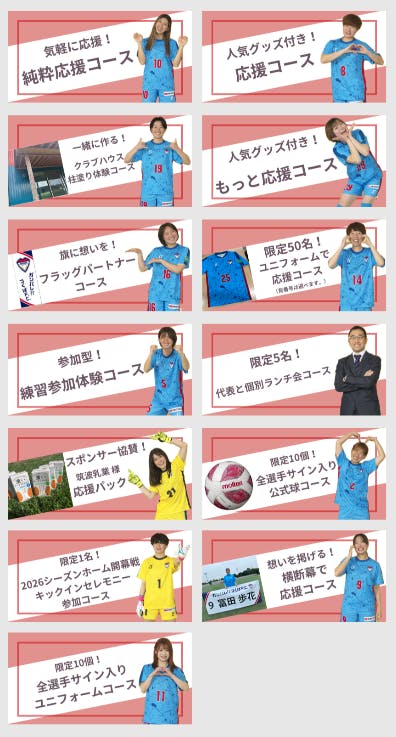 なでしこリーグ昇格に向け選手の皆さんのお力に少しでもなれたら幸いです! りささん頑張れ!!!りささんの頑張る姿を見ていると元気をもらえるし自分も頑張ろうという気持ちになります!いつもありがとうございます!これからも応援しています!!