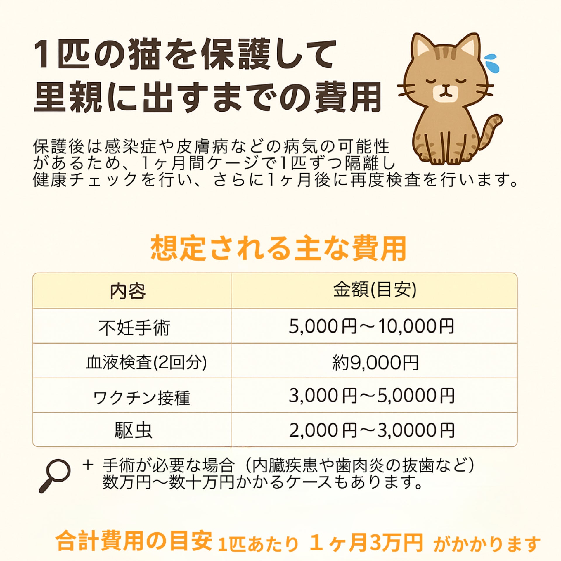 私はこれまで、地域の猫たちのために、保護・治療・不妊去勢手術・里親探し・TNR活動などに取り組んできました。今回のクラウドファンディングに向けては、必要な資金や保護計画をしっかりと見積もり、準備を整えています。