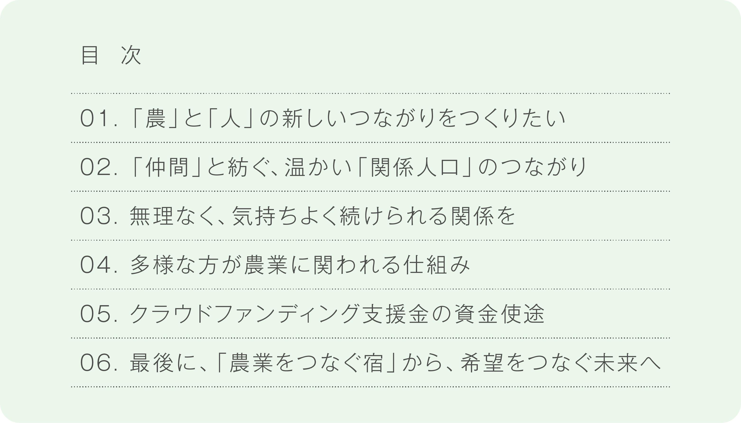 このプロジェクトが、 農業と人、都市と地域をつなぐ「新しい希望のかたち」として根づいていけるように。どうか、あなたの気持ちを少しだけ、この活動に向けていただけたら嬉しいです。