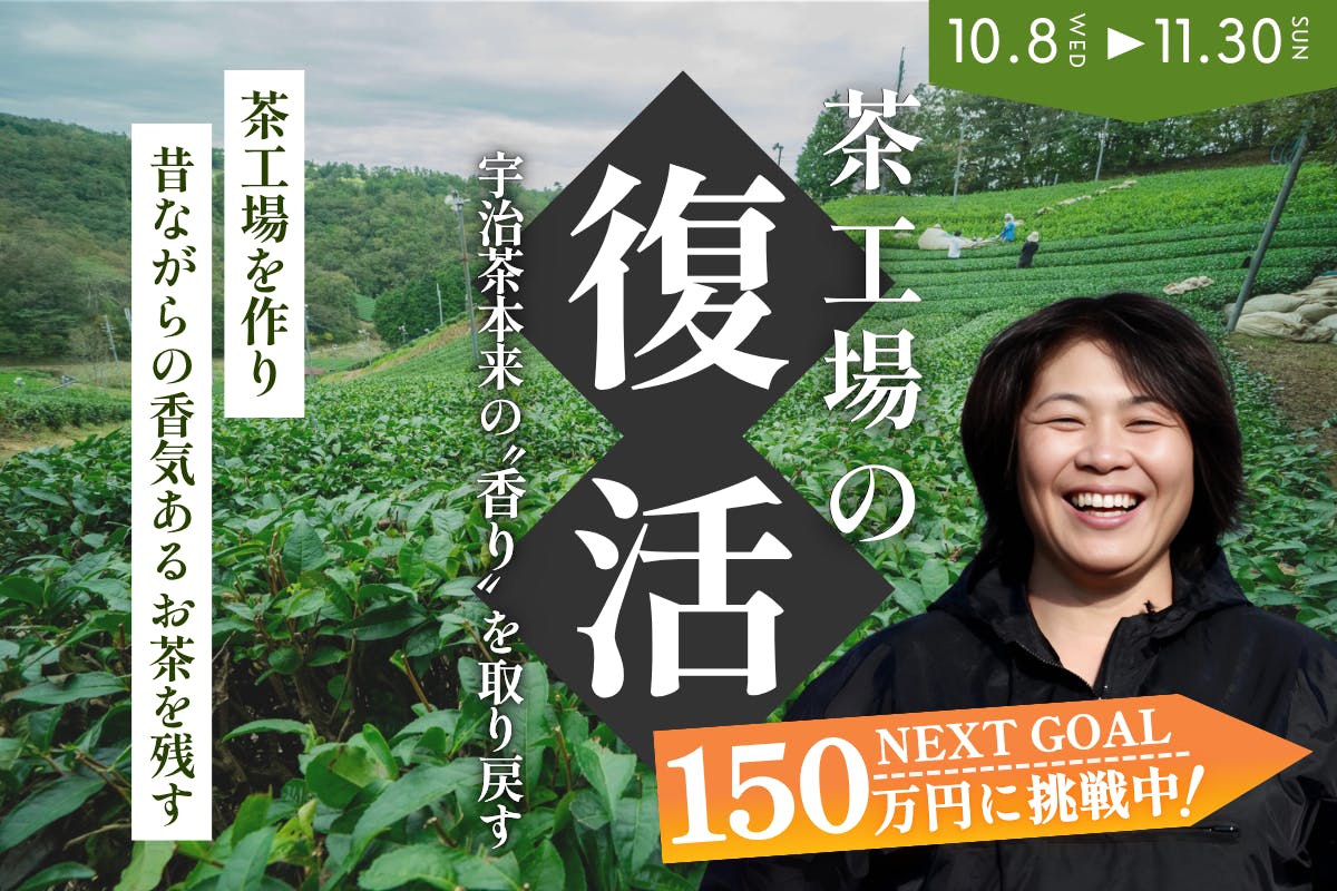 機械の購入に加え、茶工場を具体的に稼働させていくための機械の整備のために、150万円を目指して、再スタートを切っております。