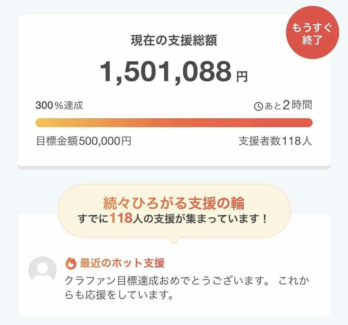 2025/11/30 21:22クラファン終了、2時間前!ネクストゴールに到達しました!!!ありがとうございます!このあと22時から最後のfacebookライブ行います!https://www.facebook.com/share/1BaBQE4vwB/?mibextid=LQQJ4dお友だち登録後、ライブでみられます!ぜひ遊びに来てください!クラファン事務局 もっと見る