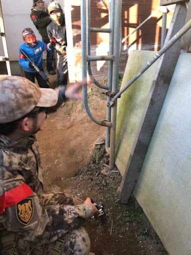 仲間内で何度か違うフィールドを貸し切り、ゲームをするようになり、回数を重ねる内に、自分達で自由に使えるフィールドが欲しくなり、見よう見まねでフィールドを作りはじめました、ところが作り始めた矢先に仲間の若い子達は大半が大学生ということもあり、就職が決まり、他の子達は転勤などでバラバラになってしまい、私一人でフィールド造作をすることになり、この際なので他の人にも使って貰えればとの想いで、現在まで、「限られたスペースの中でも楽しめ、他のフィールドとはひと味違うフィールド」を目指してコツコツ造作してきました。バリケードの配置や、通路の配置に何度も作り変え、やっと出来た構造物も冬の北風には外壁をなぎ倒され、夏の台風では弾が外に出ない様に張ったネットがビリビリに破けたりと、次から次へと予想外の事が起きました。(泣)それでも、このフィールドが好きで来てくださるお客様の為にと、寝る間も惜しんで作り込みました。現在ではお客様の中からスタッフとして活動に協力してくれる仲間も増え、次のフィールド運営に向けて頑張っています。
