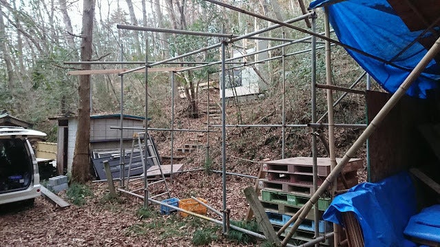 まずは雨風を駕ぐための資材置き場から作っています