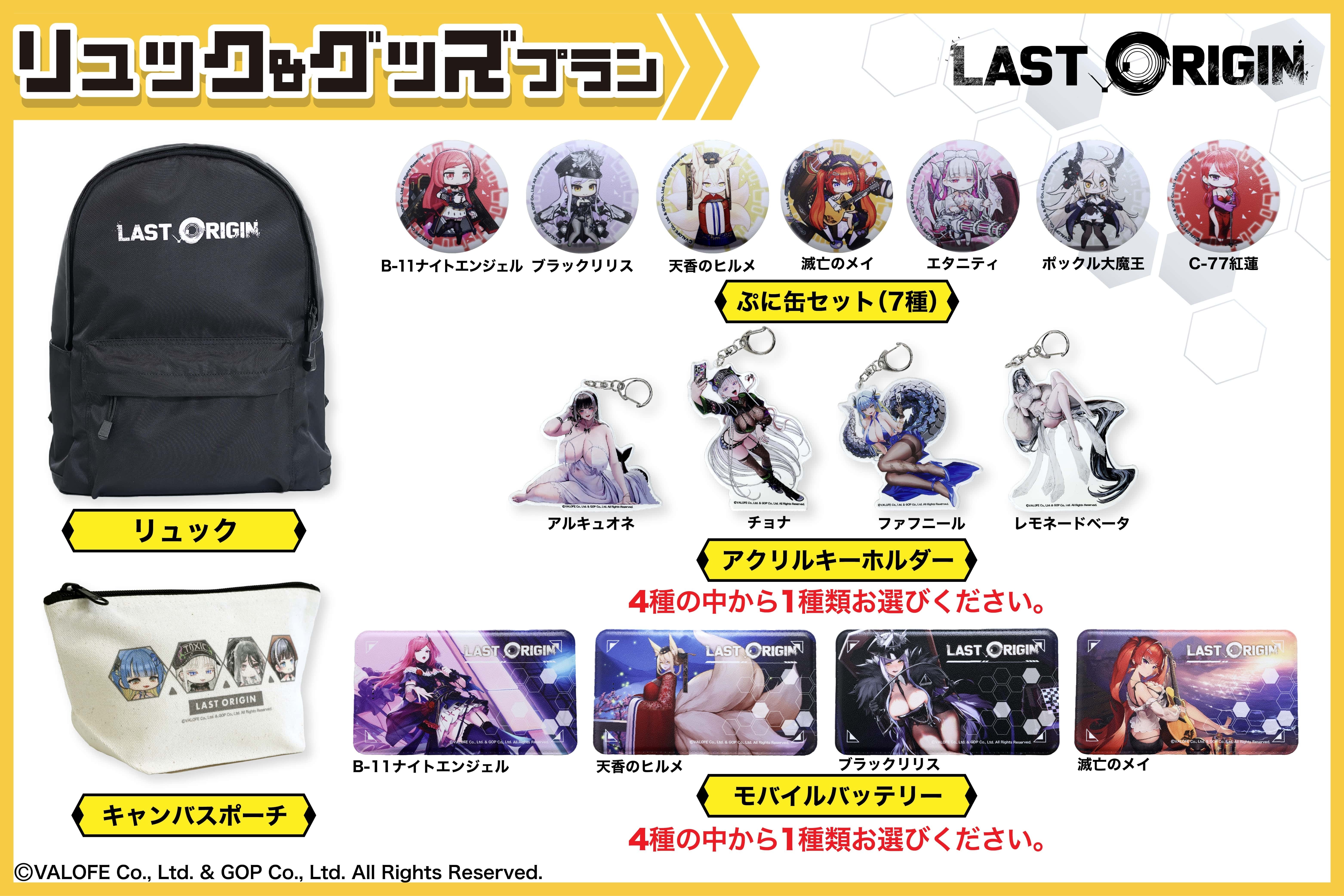 リュックと一緒にラストオリジングッズが全てゲットできる豪華なプランです!
