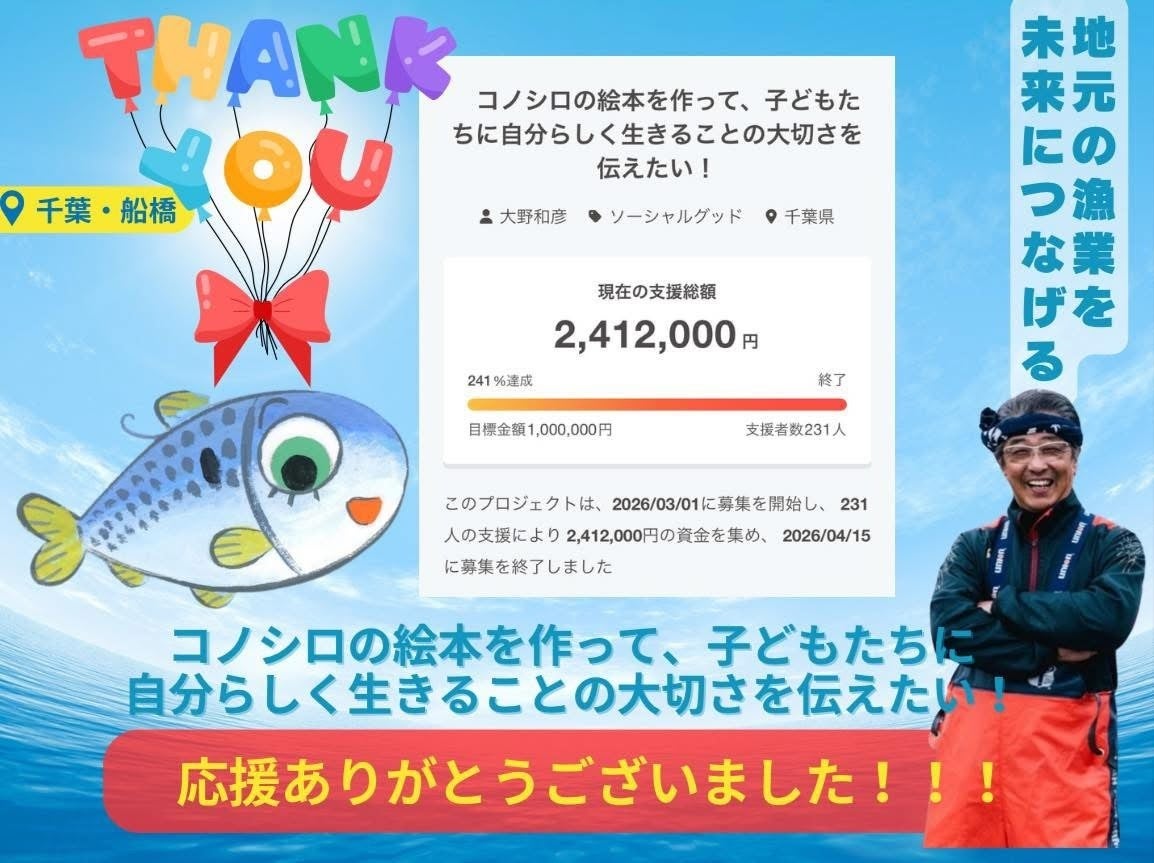 コノシロの絵本を作って、子どもたちに自分らしく生きることの大切さを伝えたい!『コノシロさんちのハルちゃん』プロジェクトオーナーの大野和彦です。