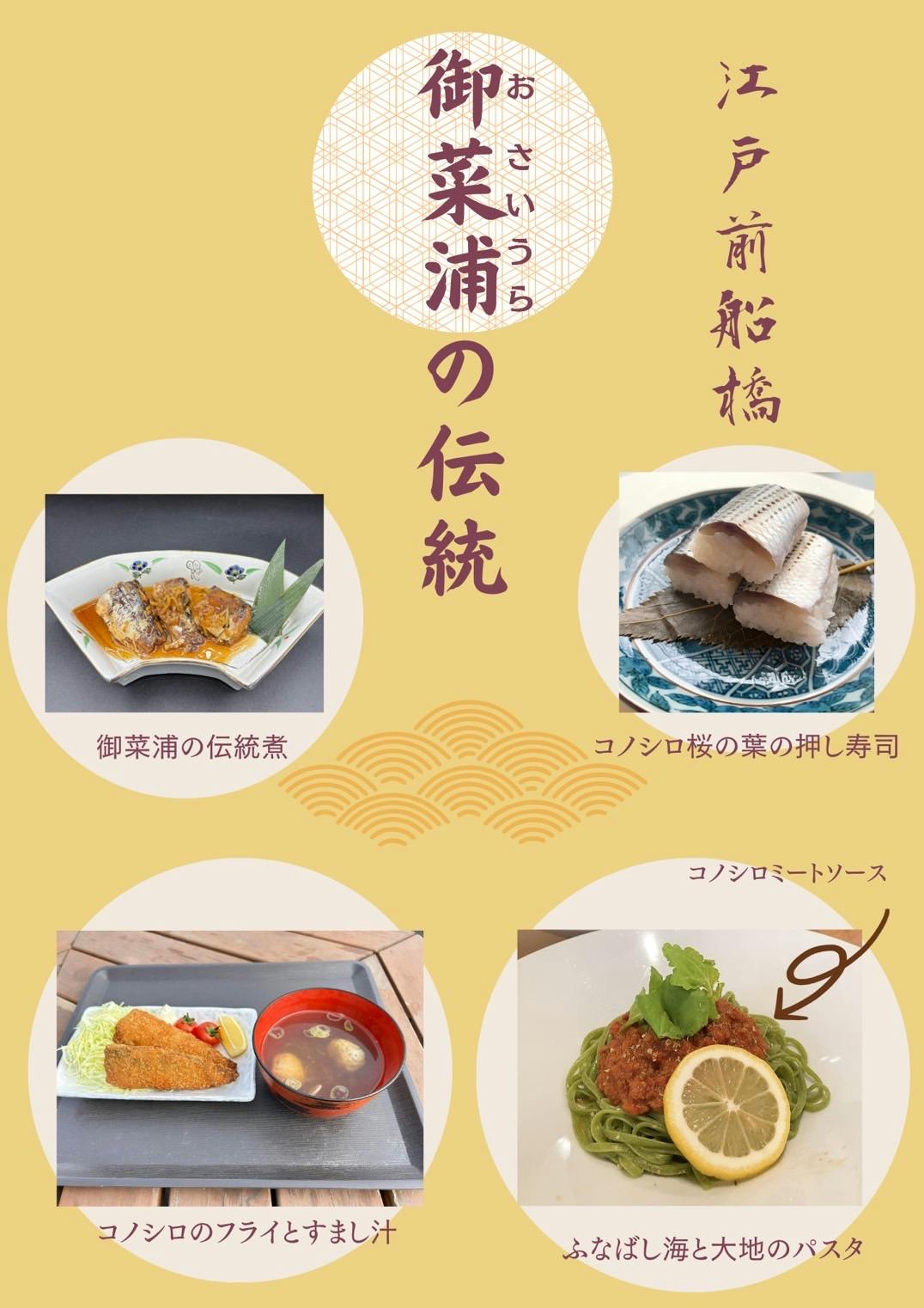 これまでいくつかのコノシロを使った製品も完成し、少しずつ販売も始まっておりますが、それと並行して一昨年の秋からは、市内の小中学校の給食に、各学校オリジナルなメニューで、子供たちに提供されるようになってきました。 食育を通じて海の環境や伝統江戸前漁業の持続性を確保するためにも、コノシロの認知度をさらに広く拡散することが不可欠であると考えて、このプロジェクトを起案しました。 そしてこれらの活動を知った、船橋市を拠点とするご船橋応援アイドル『himawari(船橋)』が、コノシロ応援大使となってこのプロジェクトを是非応援したいとと名乗りを挙げてくれました。