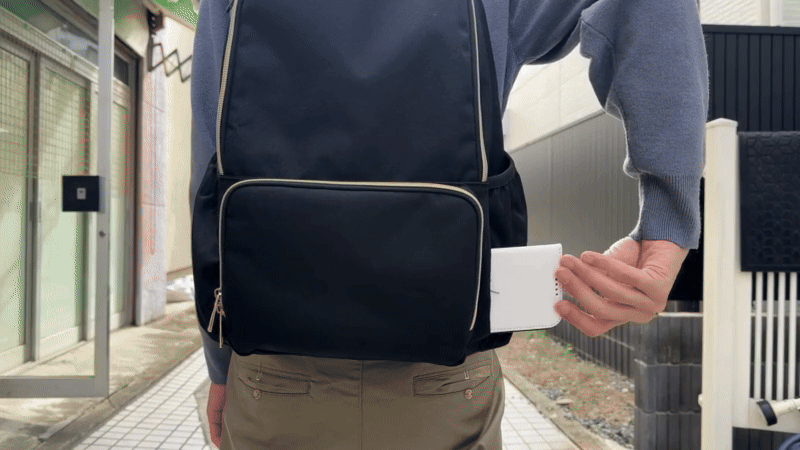 なくしちゃいけないのでズボンのポケットでは不安だし、普通のリュックだとその都度いちいち下ろして出し入れが大変です。