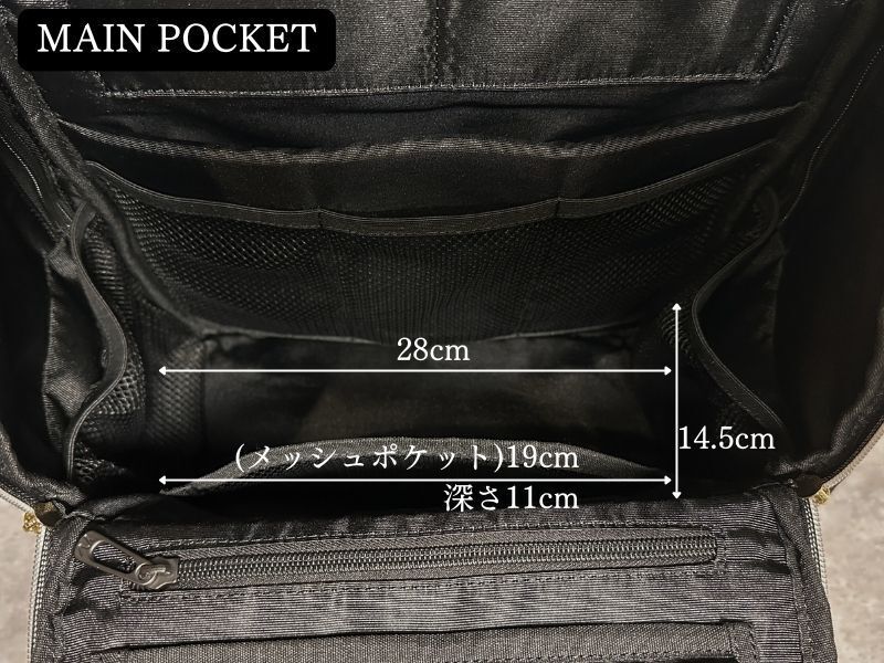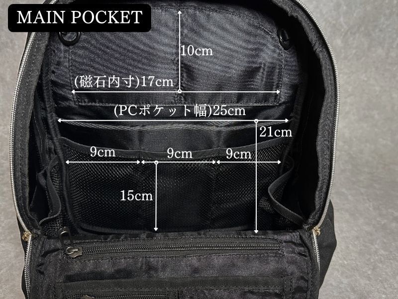 メインポケットの容量は11.9リットルです。