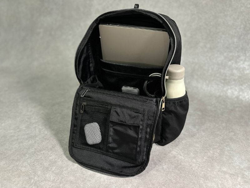 ドリンクポケットや、長さが38cm以内の折りたたみ傘ですと、メインポケットにも入れて持ち歩くことができます。
