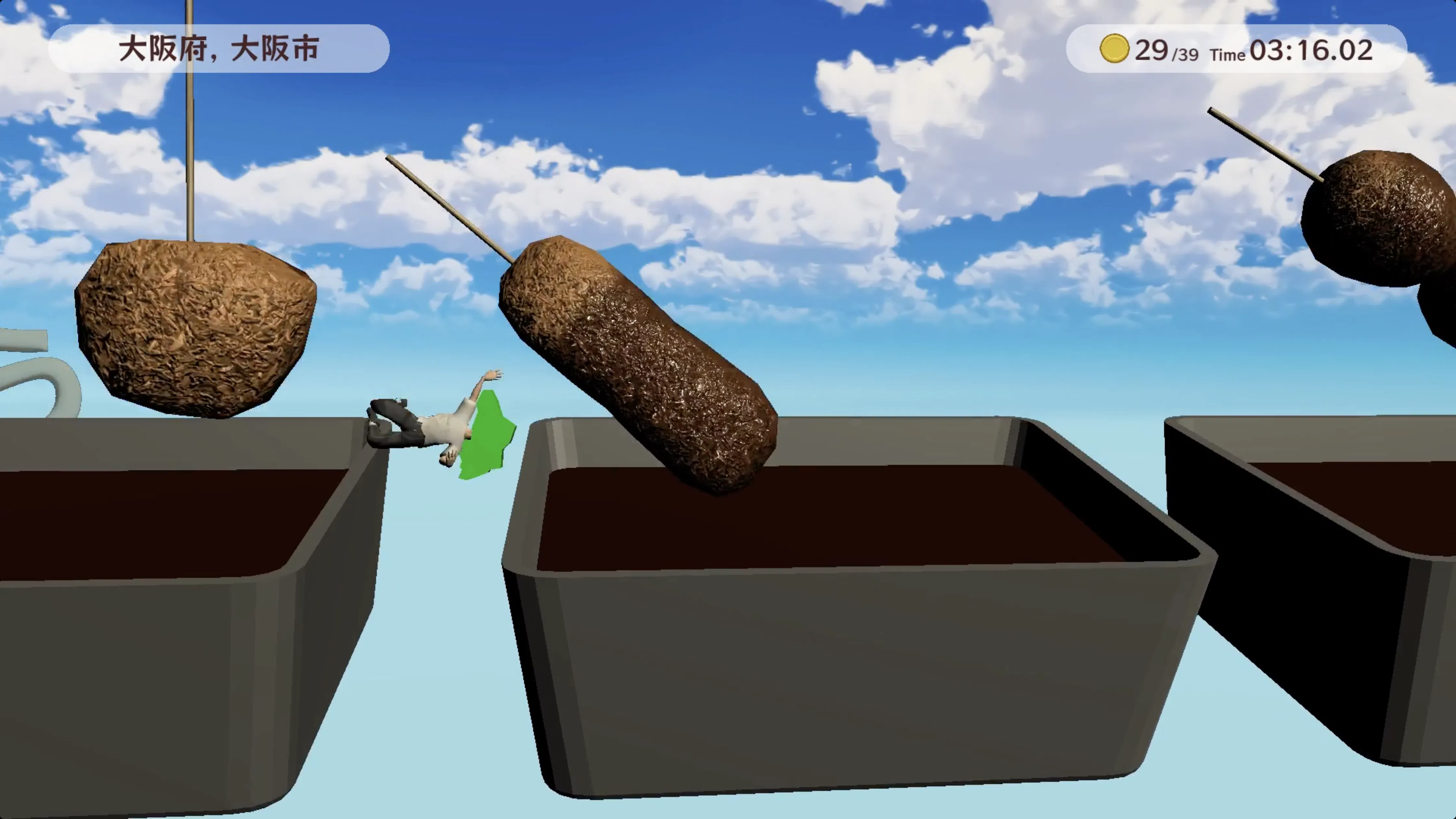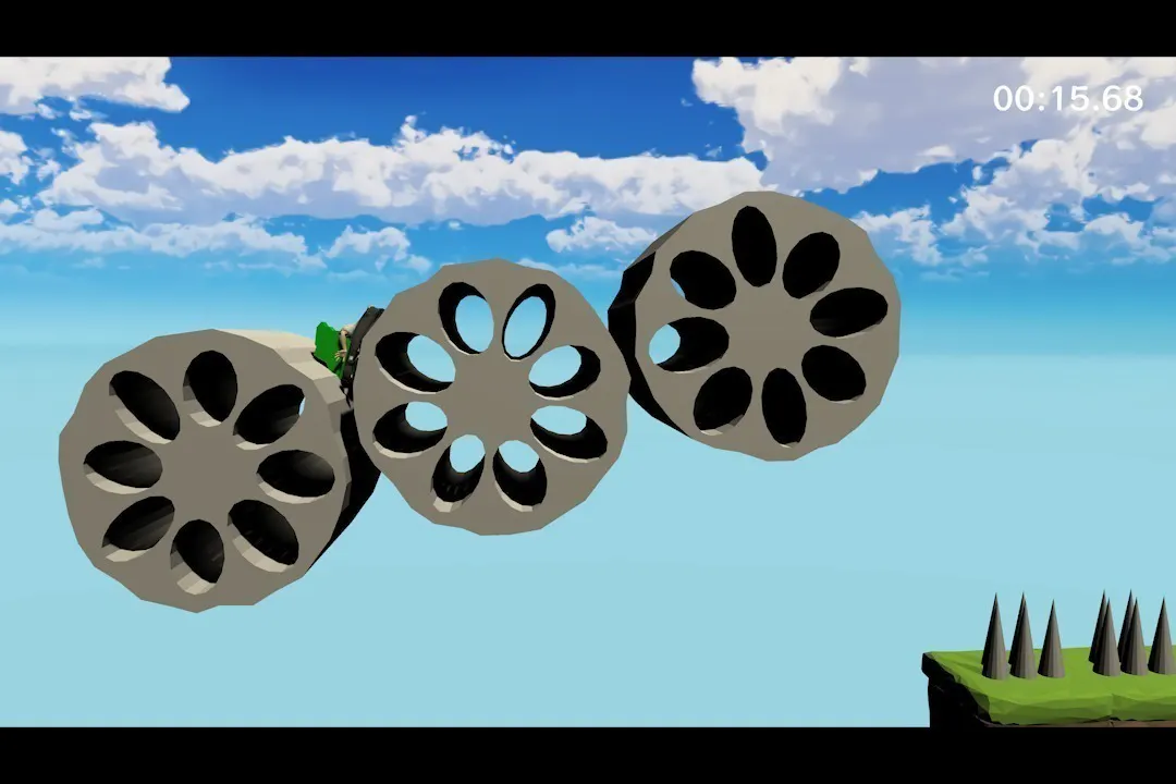 ただし、キャラクターは全身の力が抜けた状態で、歩くだけでも一苦労。独特の操作感覚を制御できるかがゲームの肝だ。