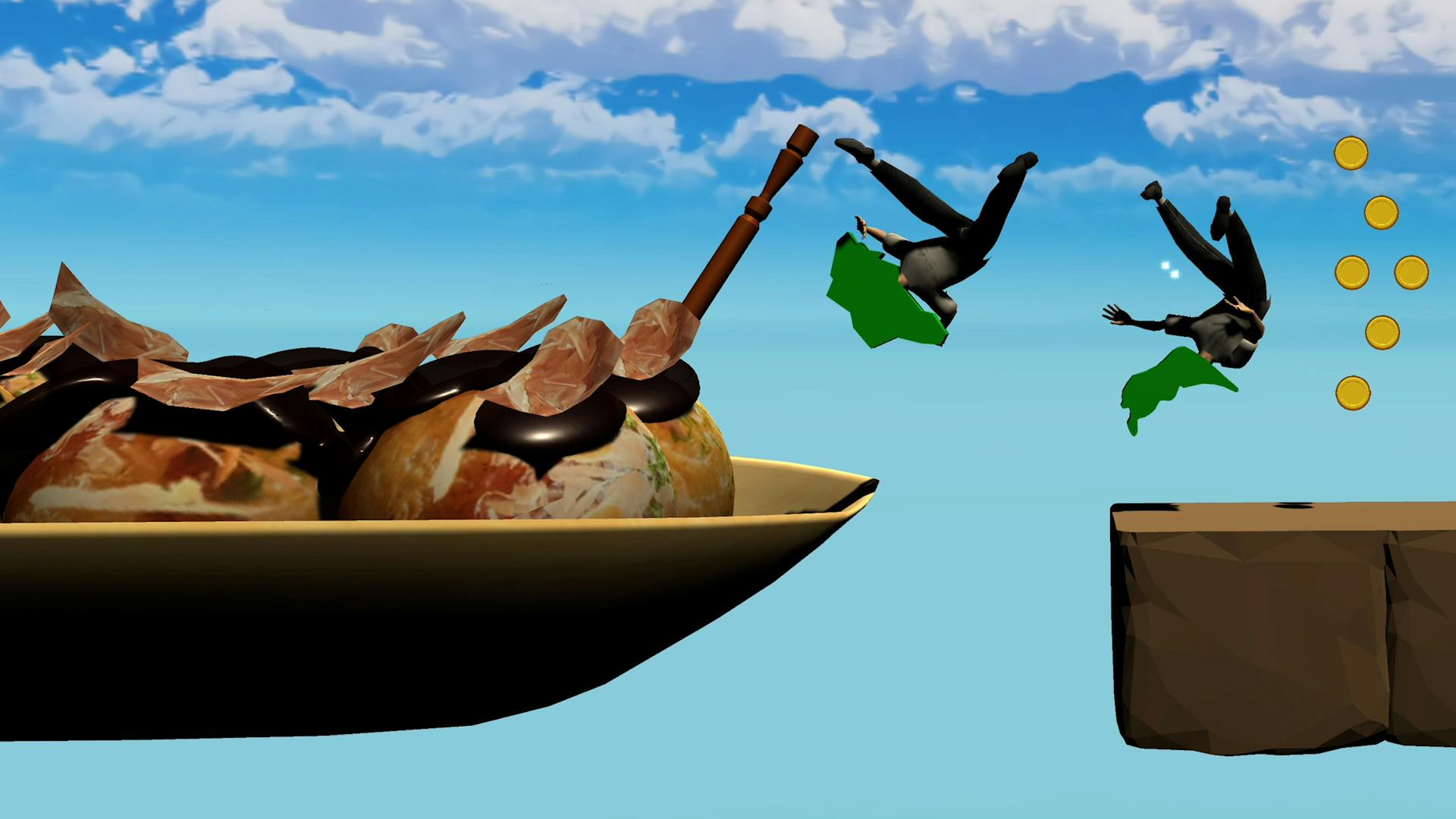 ステージから落ちないように飛んだり跳ねたりしてゴールを目指す、
