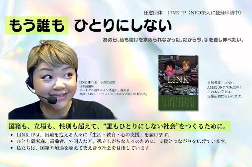 ◆ 団体概要:LINK.JPは、現在NPO法人化を目指して準備を進めている任意団体です。 私たちは、国籍や立場に関係なく、外国人・海外在住の日本人・生活困窮者・高齢者・ひとり親家庭など、支援を必要とする人々に“言葉・学び・希望”を届ける活動をしています。