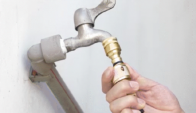 ニップルを蛇口の形状とあわせてニップルの組み合わせを選んで蛇口にニップルを取り付け、そしてコネクターのついたホースをワンタッチで接続できます。