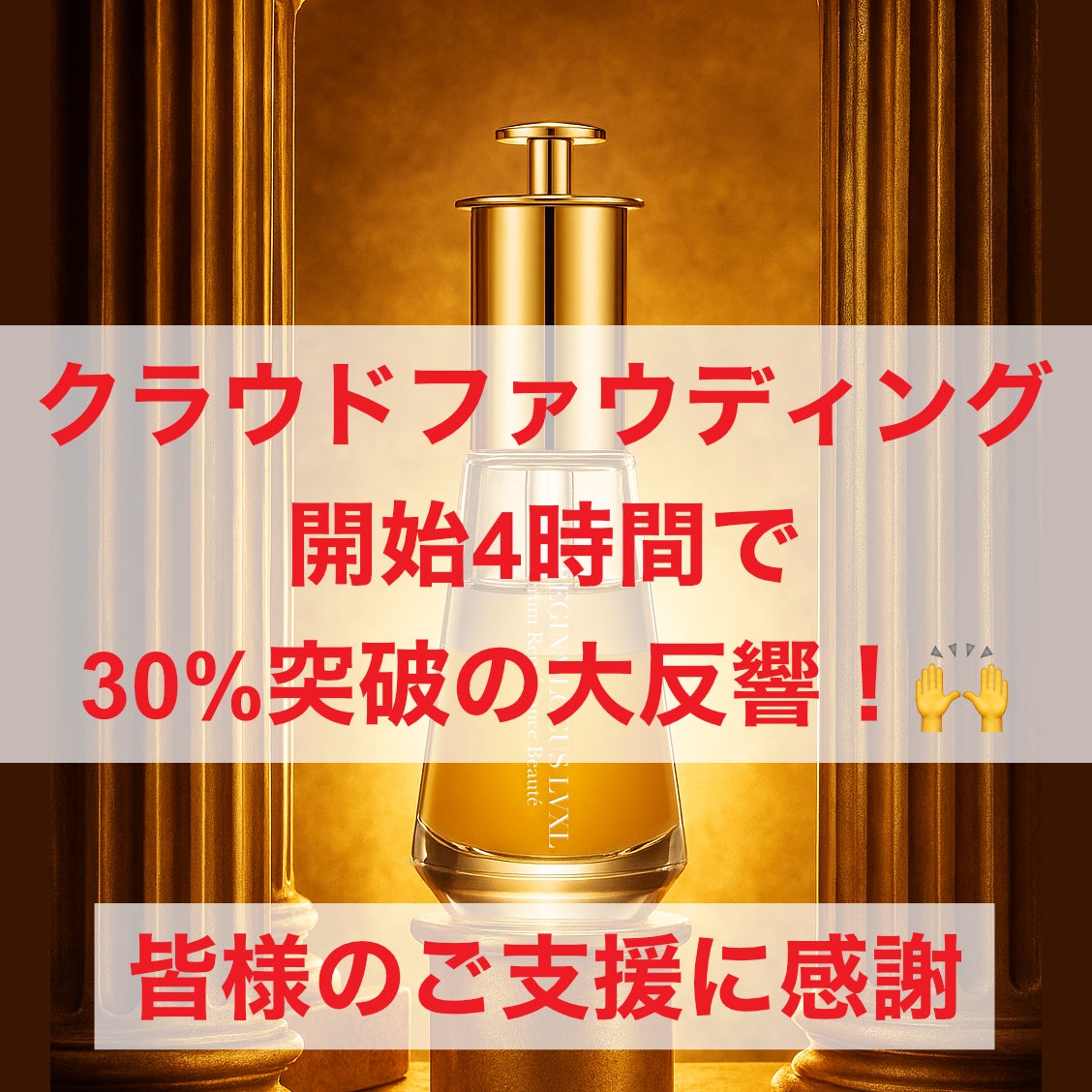本日9月4日よりスタートした『Sérum Renaissance Beauté』のクラウドファンディングが、開始わずか4時間で目標金額30万円の30%を突破しました!この驚きのスピードは、皆様の温かいご支援のおかげです。本当にありがとうございます!