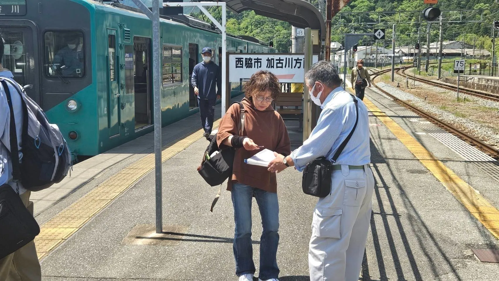 調査に協力しておられるのは、加古川線比延駅・日本へそ公園駅を含む西脇市比延地区、黒田庄駅・本黒田駅・船町口駅を含む西脇市黒田庄地区、久下村駅・谷川駅を含む丹波市久下地区の皆さんです。対象区間のすべての地区が市域を超えて連携して取り組んでおられます。このプロジェクトでは、地元の皆さんの献身的な努力を側面から応援したいと考えています。