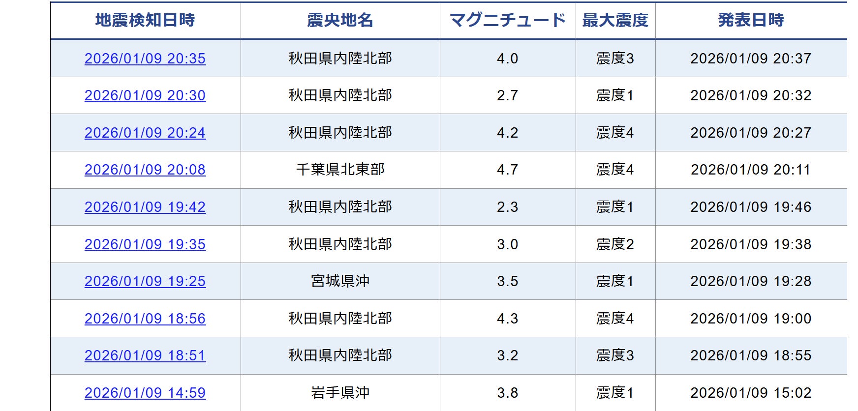 秋田県内陸部で地震が頻発しております。秋田県内在住の方は十分にご注意ください。