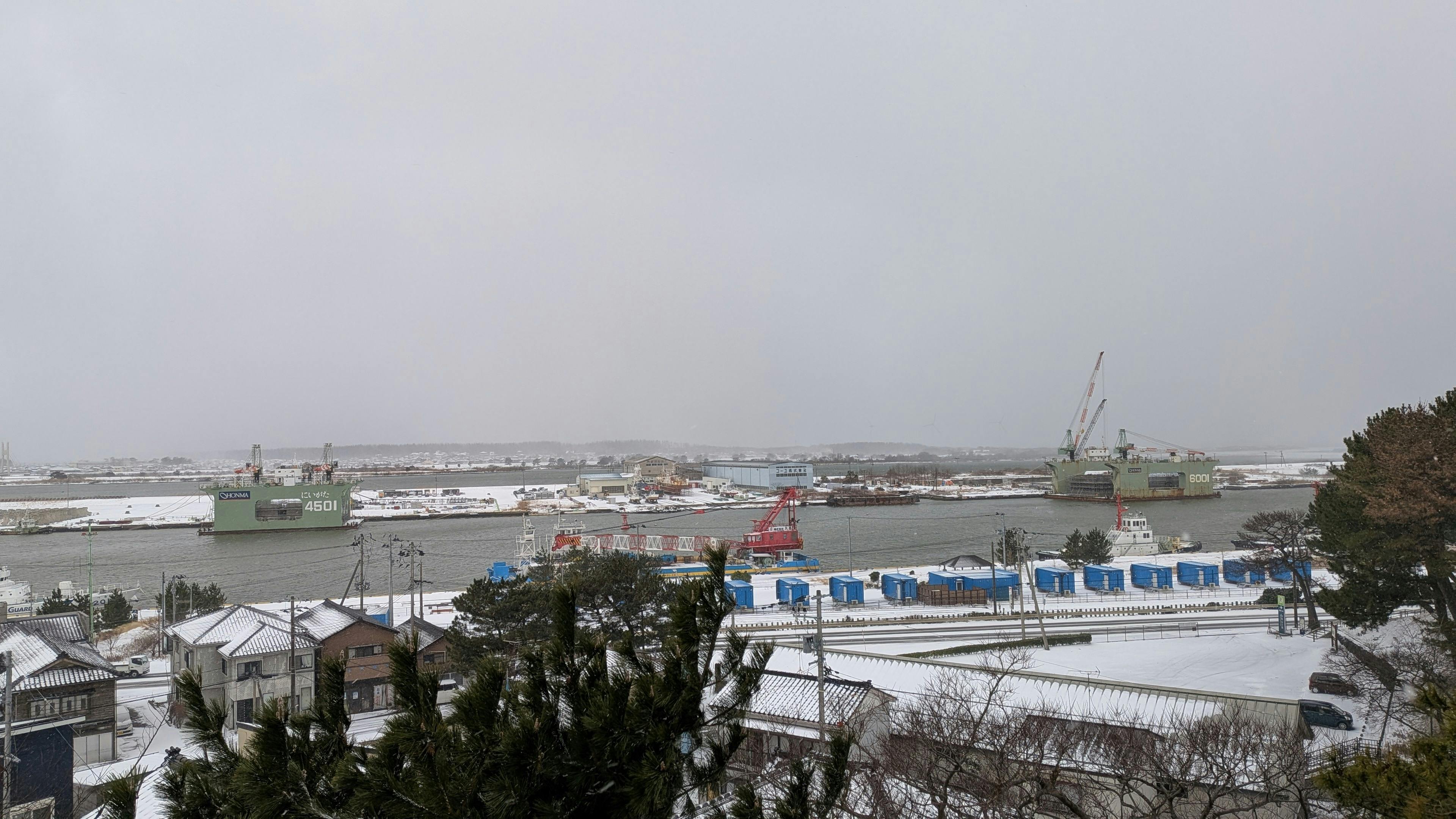 酒田港は秋田港よりはるかに大きい。停泊船の規模も全然違います。驚きました。