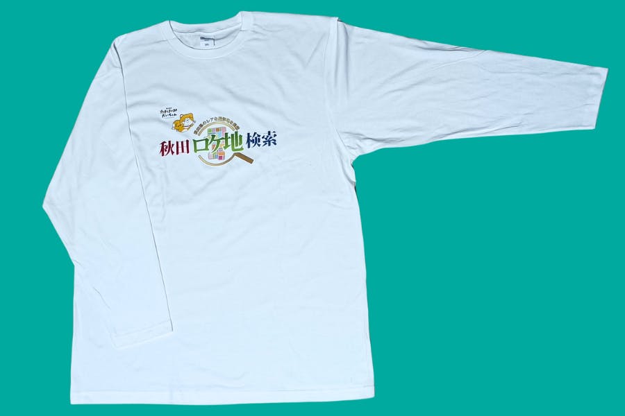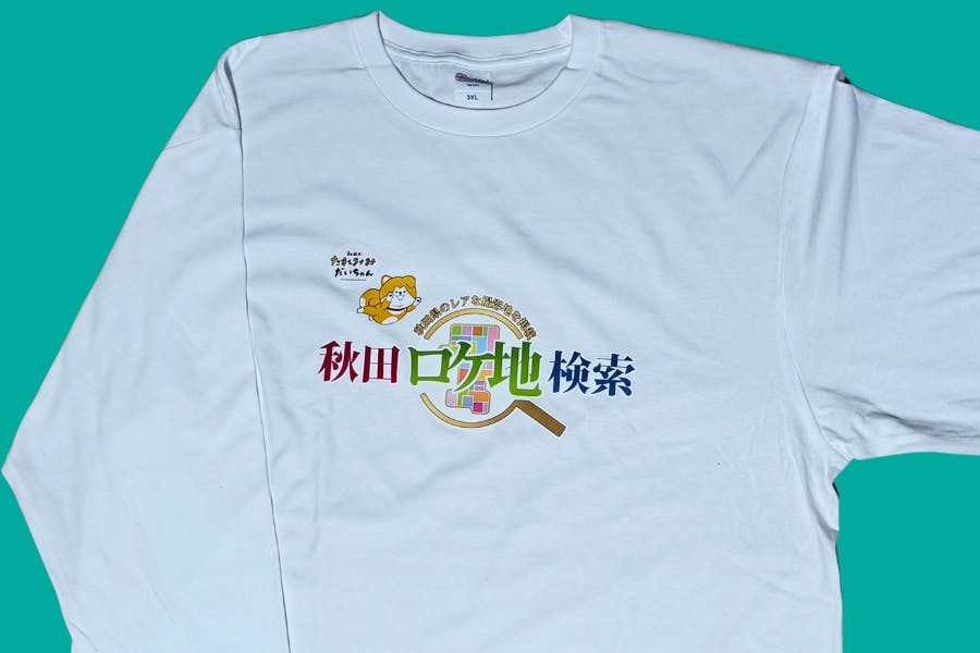 ②【「秋田ロケ地検索」×「秋田犬たれみみだいちゃん」のコラボロングTシャツ10,000円】