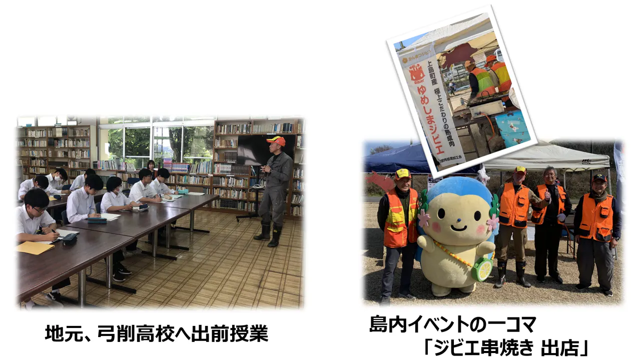 イノシシの捕獲から、ジビエの処理加工~販売、地元高校生と連携した出前授業まで、 「ジビエで元気な島づくり」を目指して活動してきました。